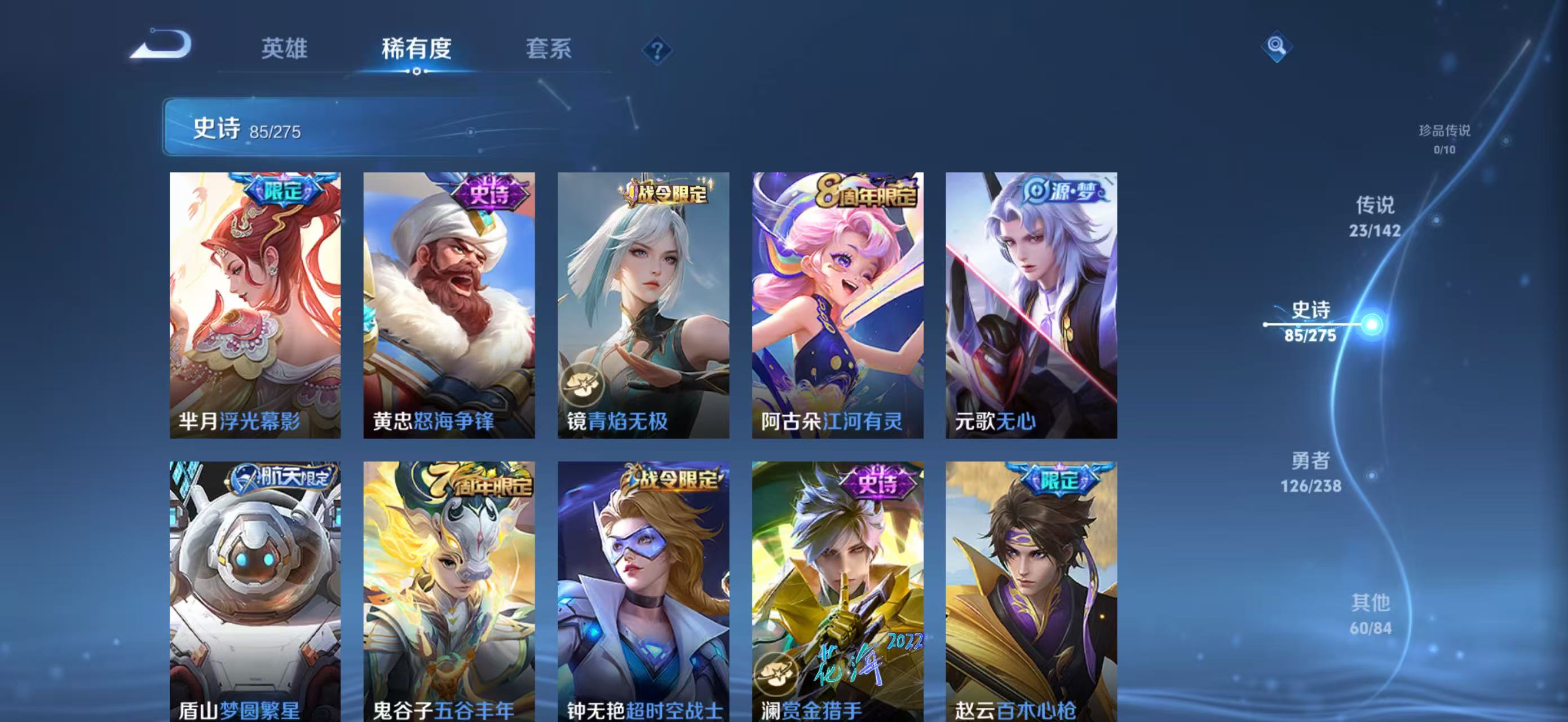 v9,2典藏4无双,多传说限定皮肤总数300