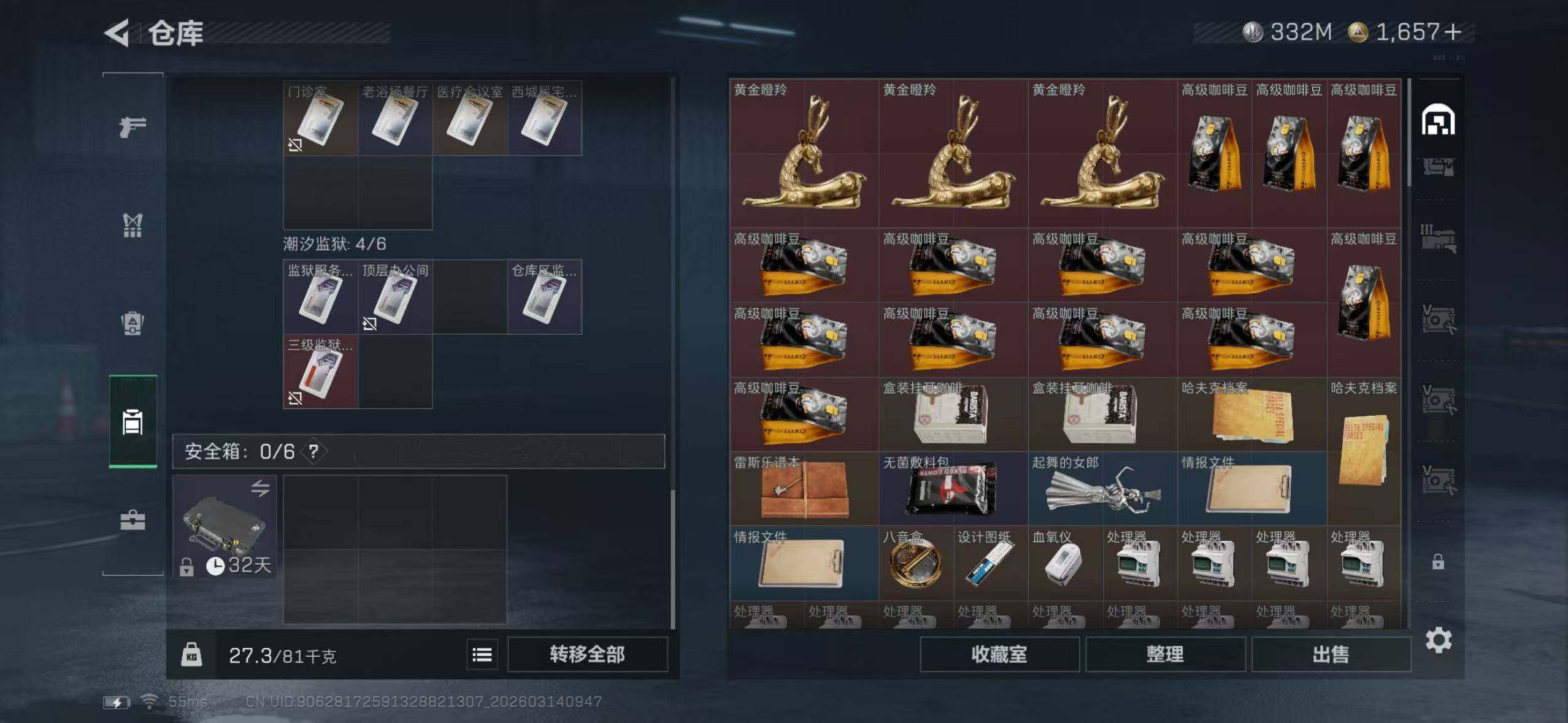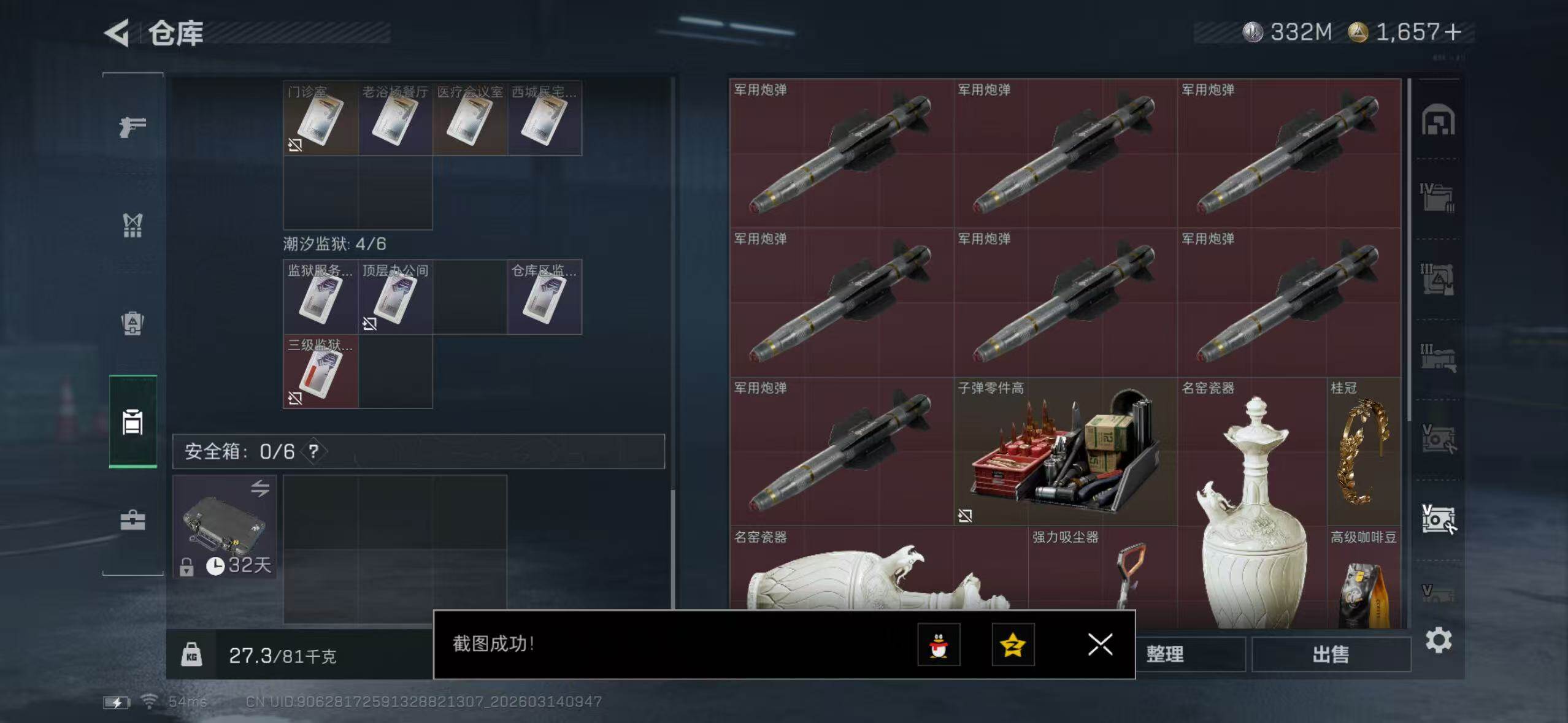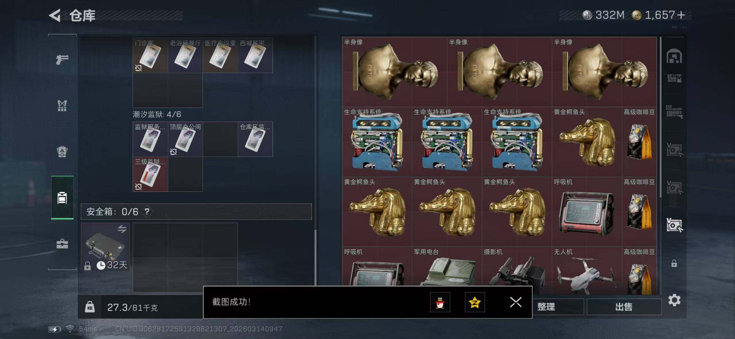 【SJ1383】602m总资产-332631k哈夫币-60烽火等级-黑鹰-50