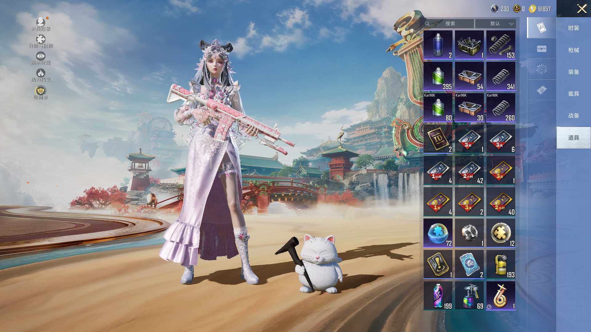 【秒换绑】安卓 手Q-11粉装-5特效枪-0载具-2粉色飞行器-42296热力值-3王牌印记-104套装-140枪皮