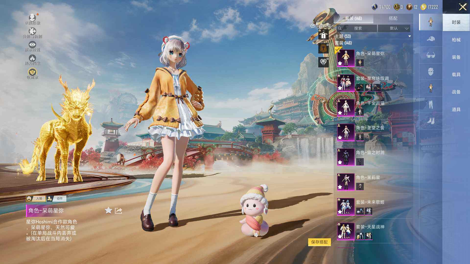 【粉色套装】:粉装-梦幻火箭,粉装-缤纷油彩,粉装-冰川粉黛,粉装-冰川幽秘,粉装-冰川红玫,粉装-第五大道,粉装-飒粉甜心,角色-呆萌星弥,粉装-天星战神,粉装-未来歌姬,角色-茉莉星,角色-宙之时溯