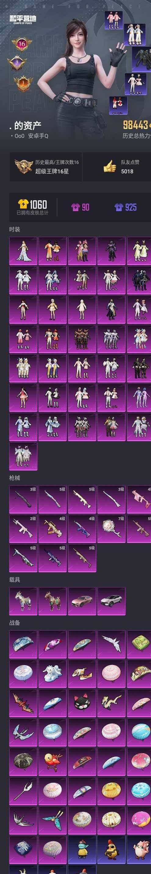 【秒换绑】安卓 手Q-36粉装-13特效枪-4载具-10粉色飞行器-98444热力值-16王牌印记-191套装-240枪皮