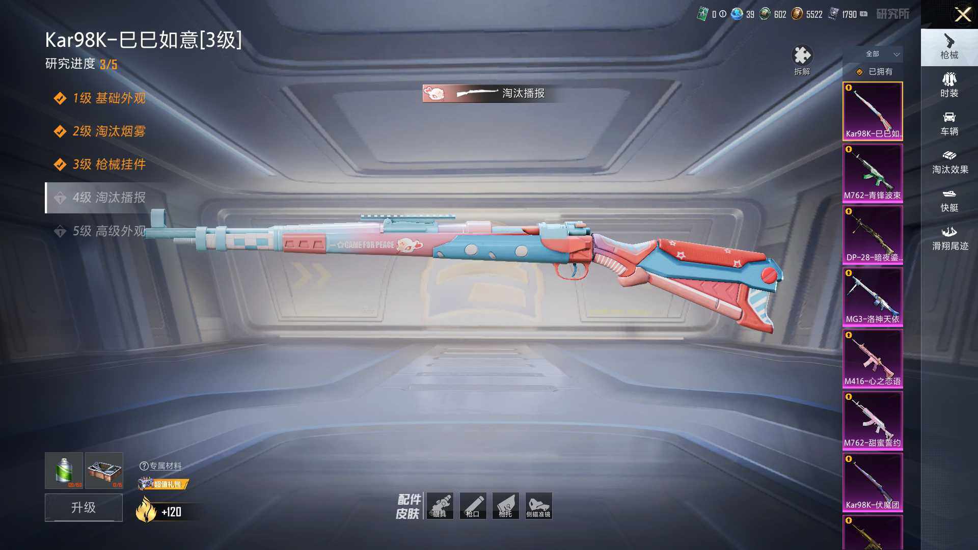 【粉色枪皮等级】:M416-五爪金龙(七级),M416-心之恋