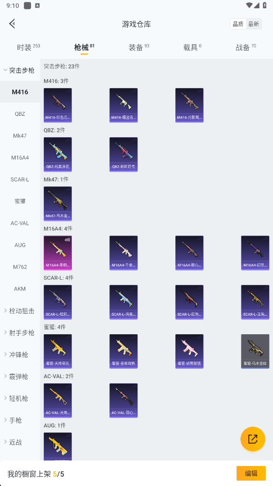 【粉色枪皮等级】:M16A4-垂柳戏鸭(四级),Kar98K-巳巳如意(五级),MK12-雪月幻音(三级)