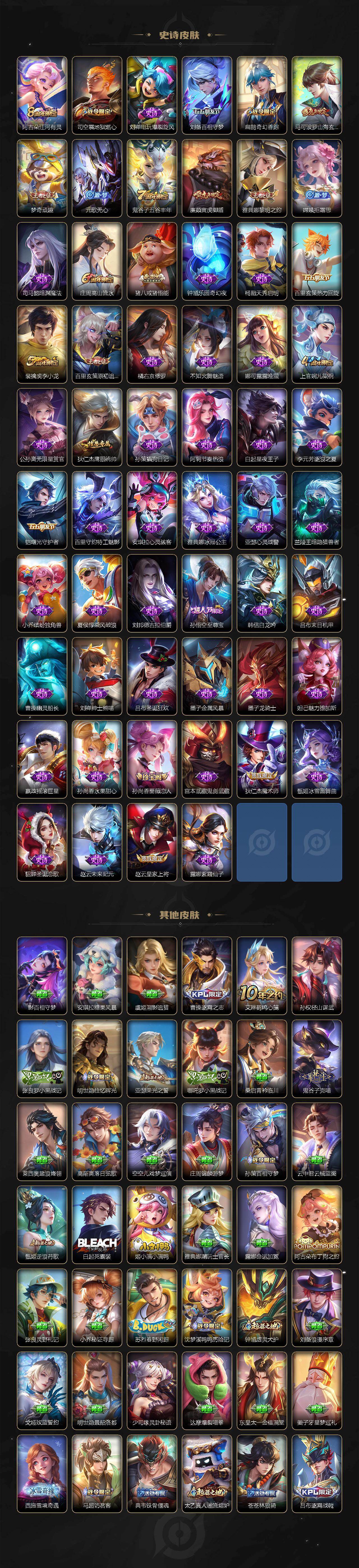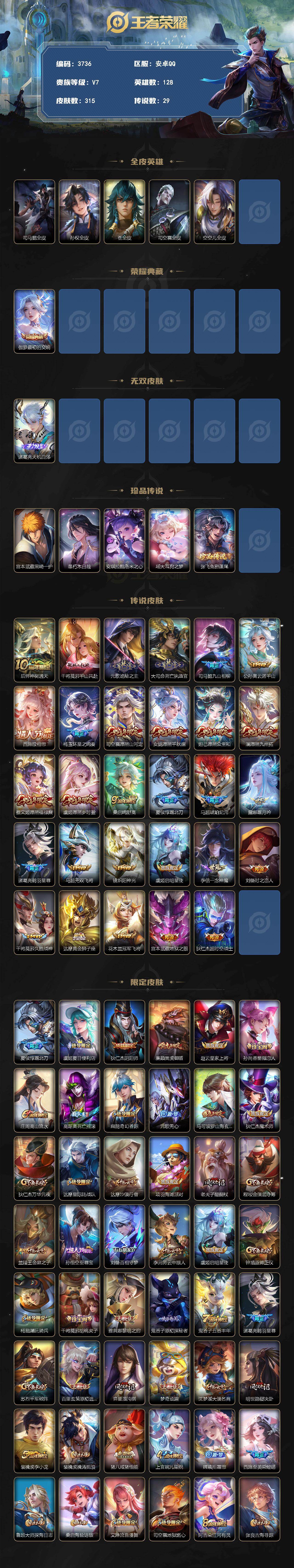 /安卓Q-V7-最强王者段位-128英雄-315皮肤-1典藏皮肤-1无双-5珍品传说-29传说-86史诗