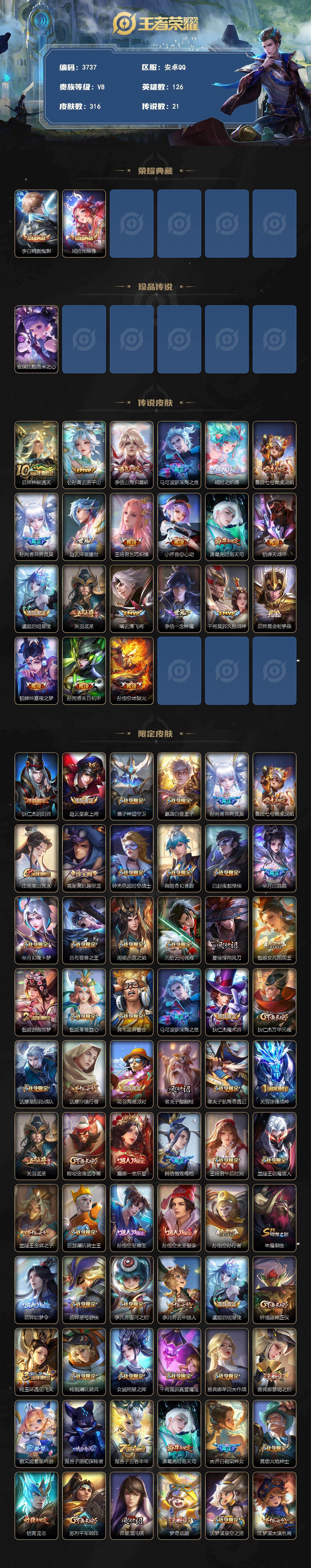 安卓Q-V8-永恒钻石III段位-126英雄-316皮肤-2典藏皮肤-1珍品传
