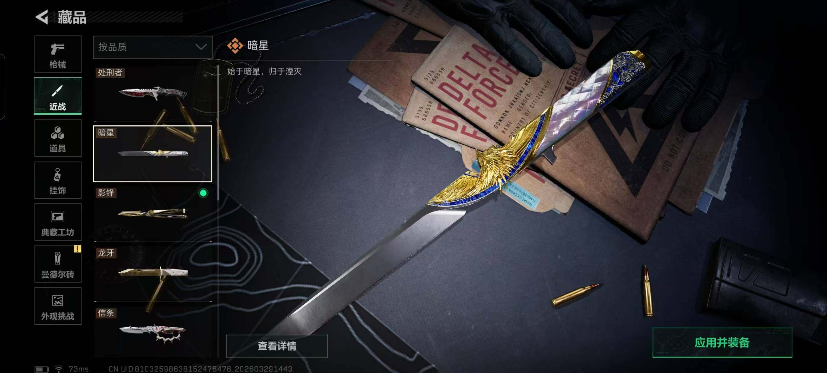 【近战皮肤】:近战-暗星,近战-信条,近战-影锋,近战-龙牙,近战-电锯惊魂,近战-处刑者4级,近战-黑鹰