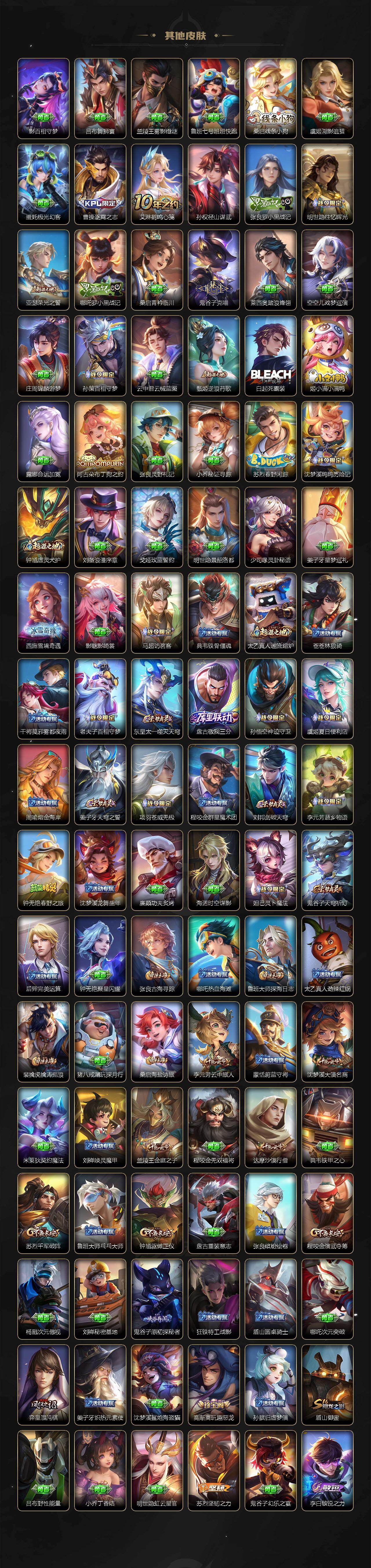 【英雄全皮】:刘禅全皮,孙权全皮,苍全皮,敖隐全皮,夏洛特全皮,空空儿全皮,影全皮