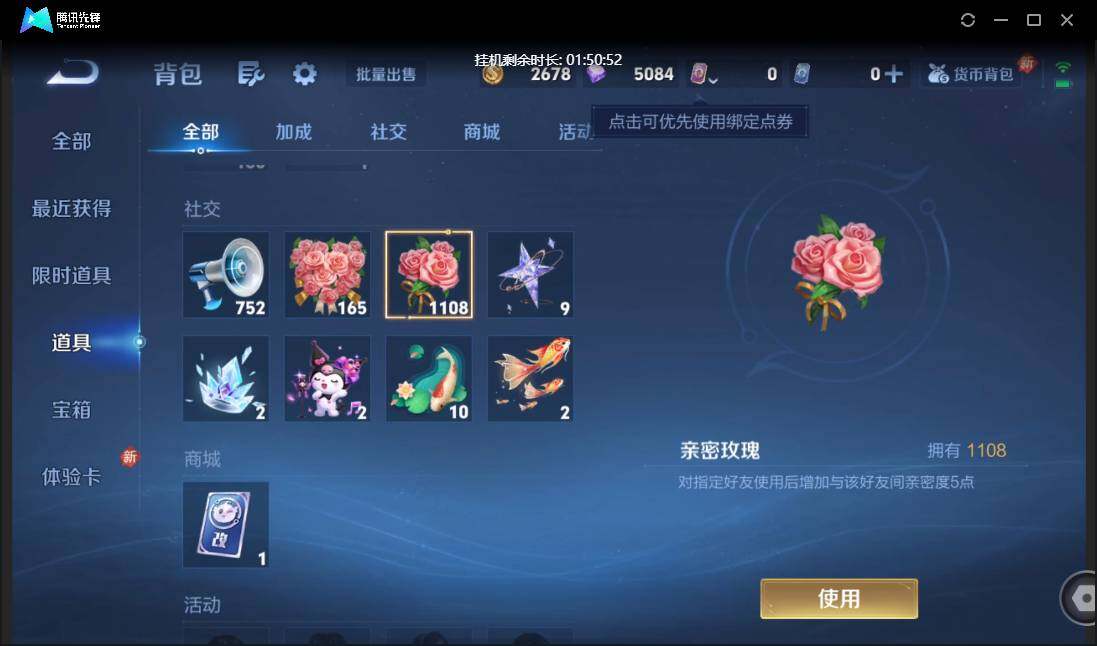 【W6104】1千+亲密玫瑰-安卓QQ-无二次-贵1-128英雄-123皮肤-