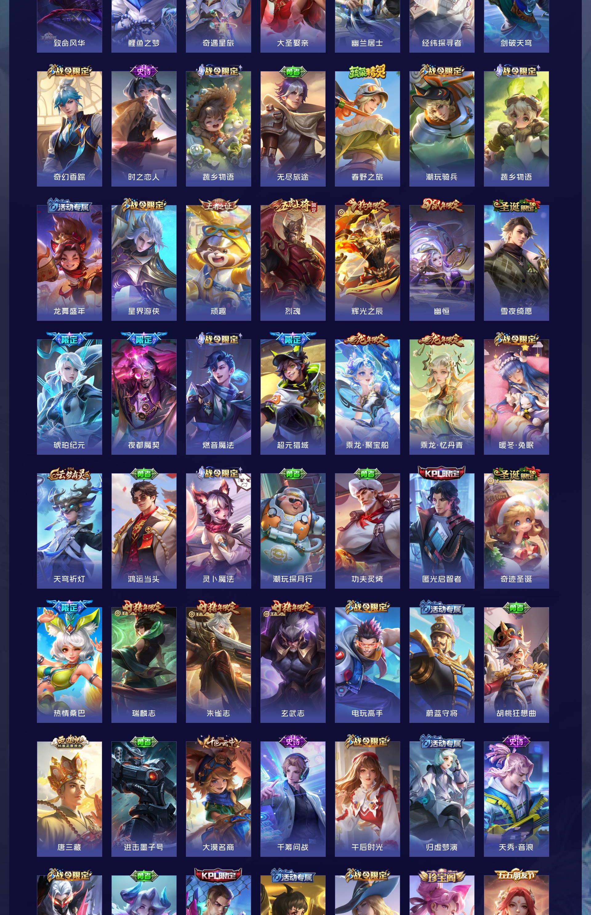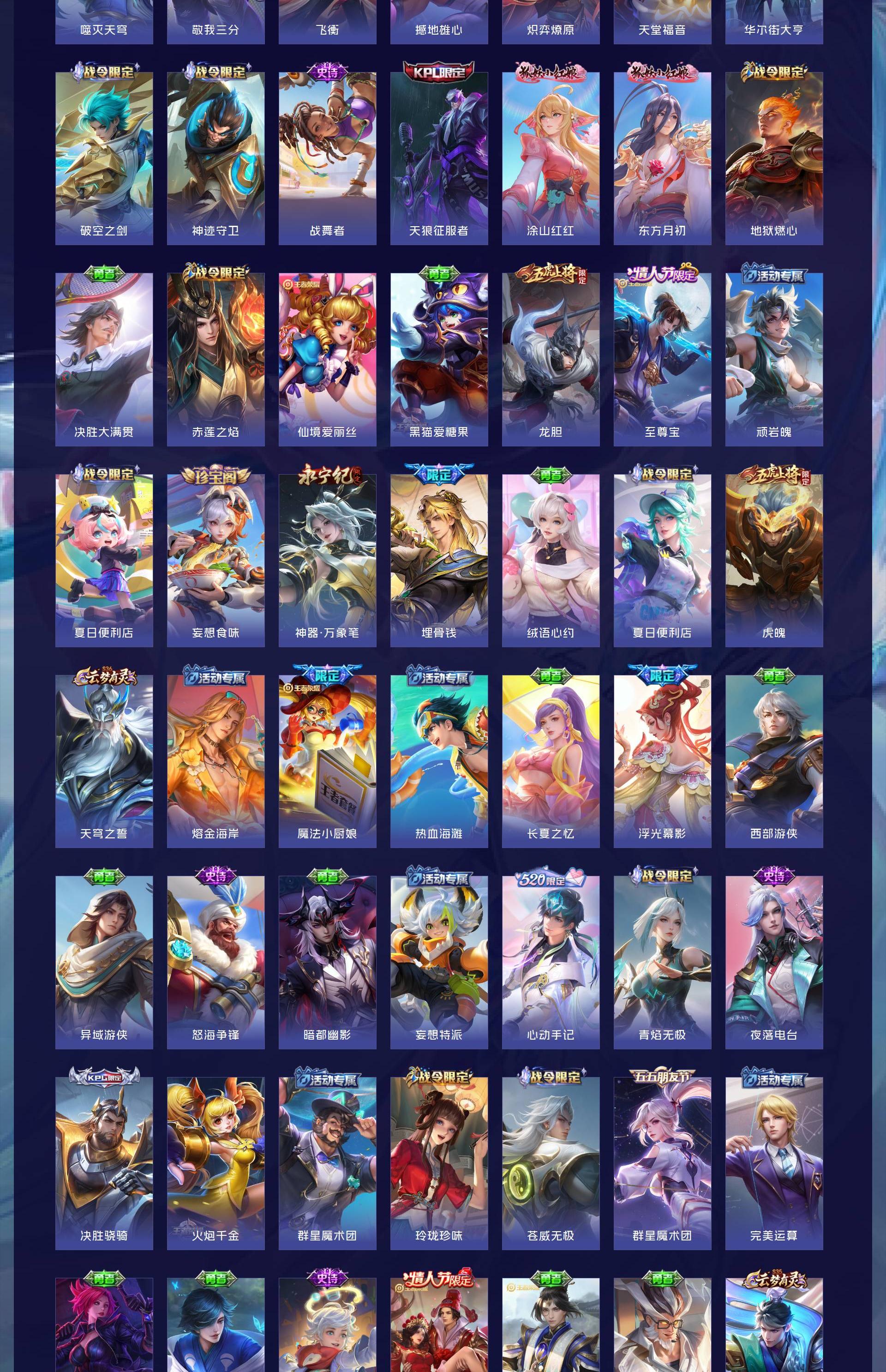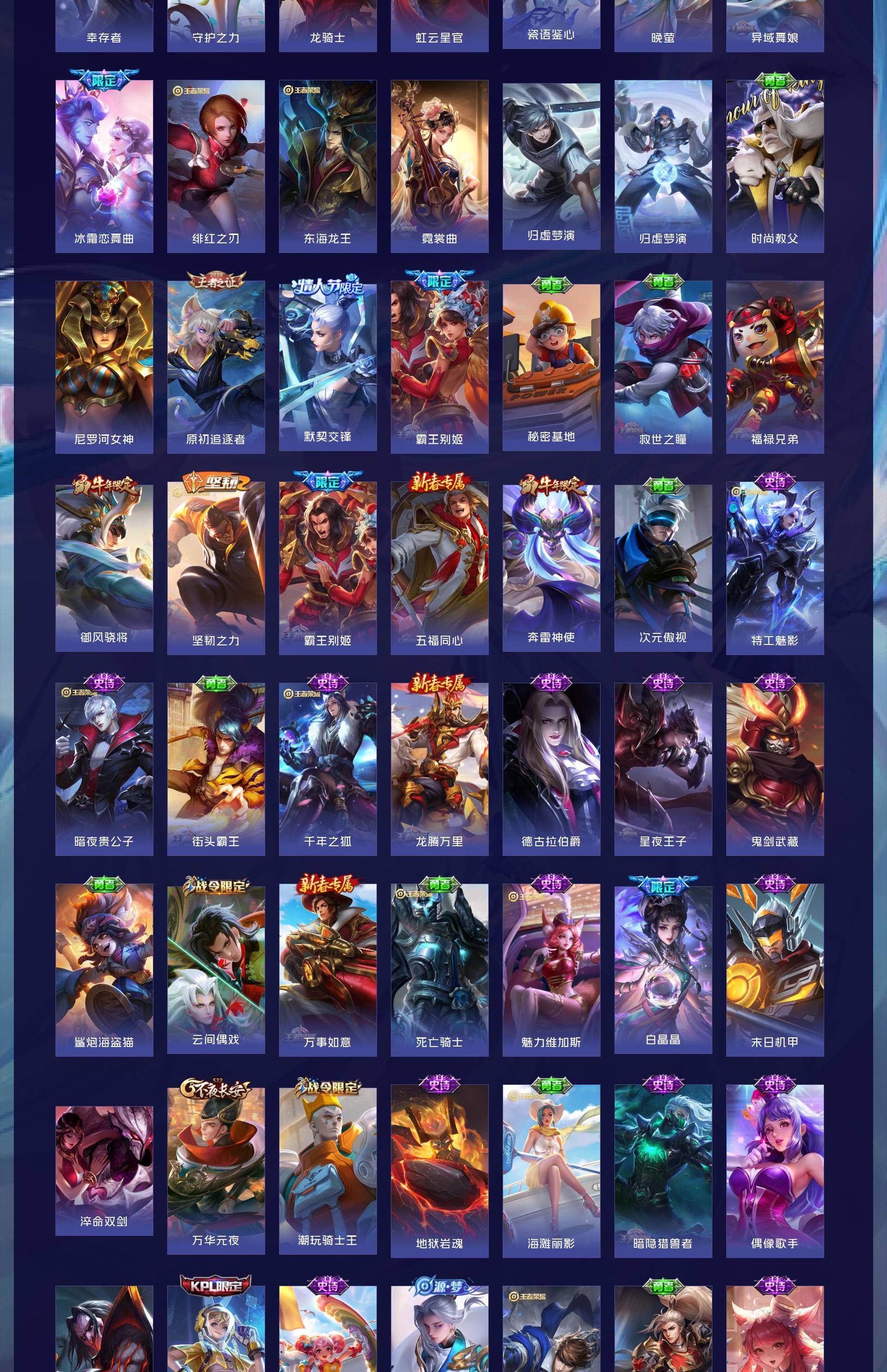V10 皮肤624 英雄130 尊贵铂金 荣耀典藏9 无双皮肤7 珍品传说4 传说97