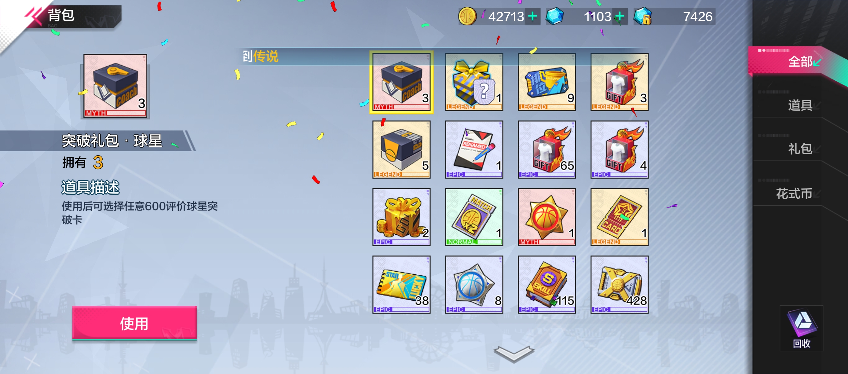 两套兔女郎6花,灵巧扣,4级灵巧上篮 5快投花