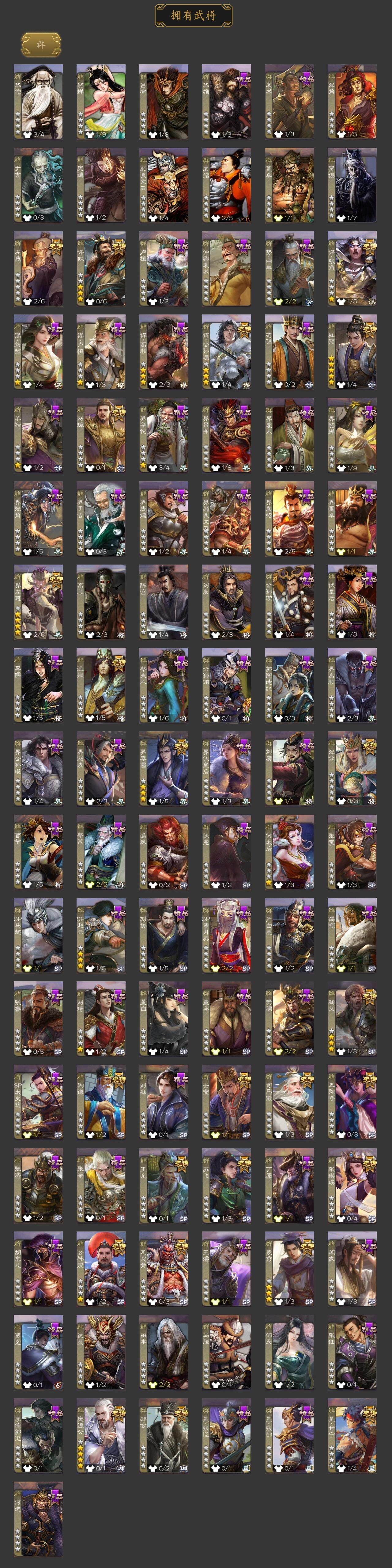神吕布,神赵云,神陆逊,神刘备,神张辽,SP司马昭,星周不疑,王粲,杨修,王元姬,王凌,王朗,界钟会,界于禁,嵇康,郝昭,陈琳,曹婴,曹纯,戏志才,刘晔,程昱,关索,马云騄,谋