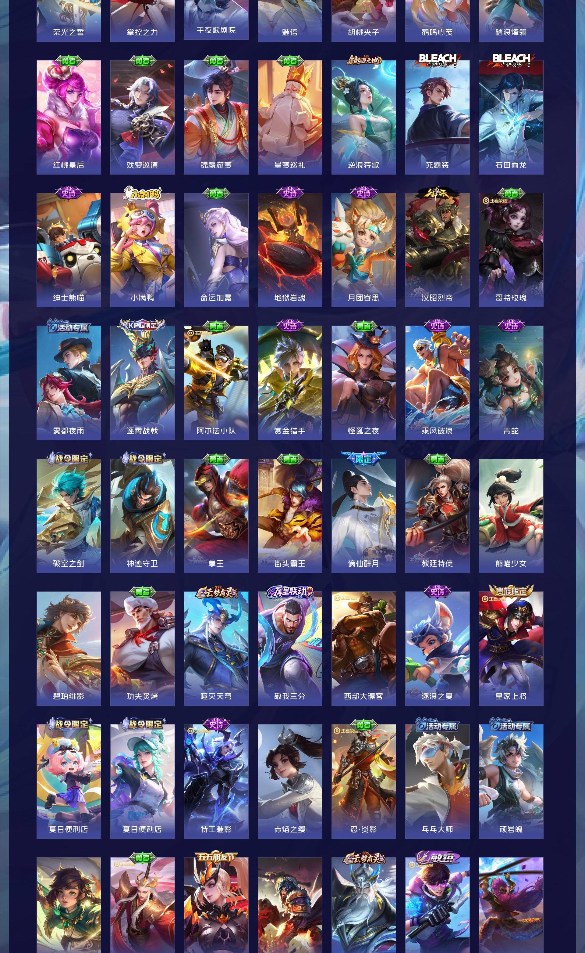 V7 皮肤157 英雄126 荣耀王者 无双皮肤1 星传说1 传说6
