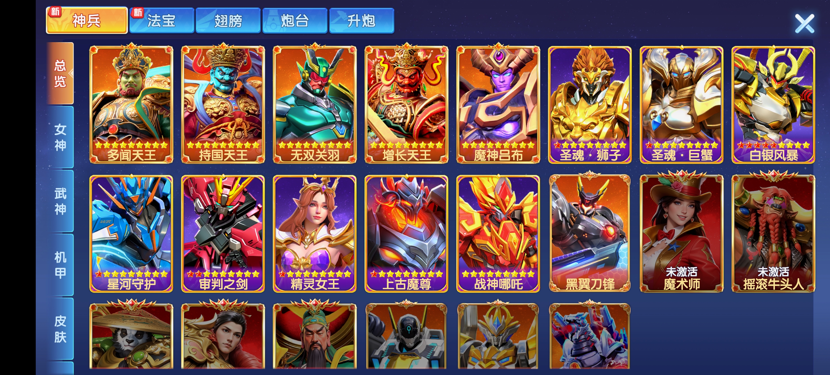 V17,神兵皮肤基本全,满星多,充值7.4w