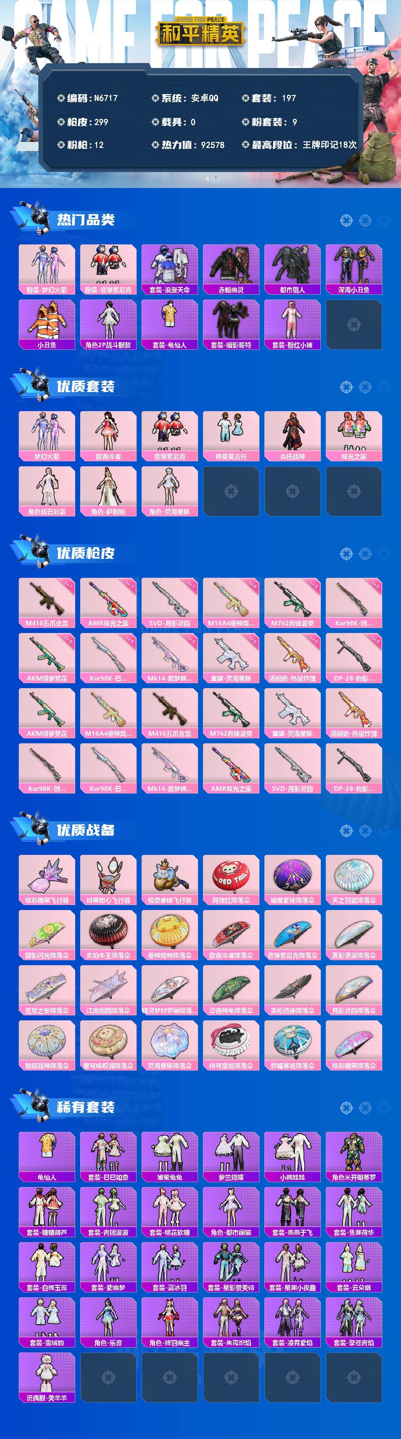 安卓 手Q-9粉装-12特效枪-0载具-3粉色飞行器-92578热力值-18王牌印记-197套装-299枪皮
