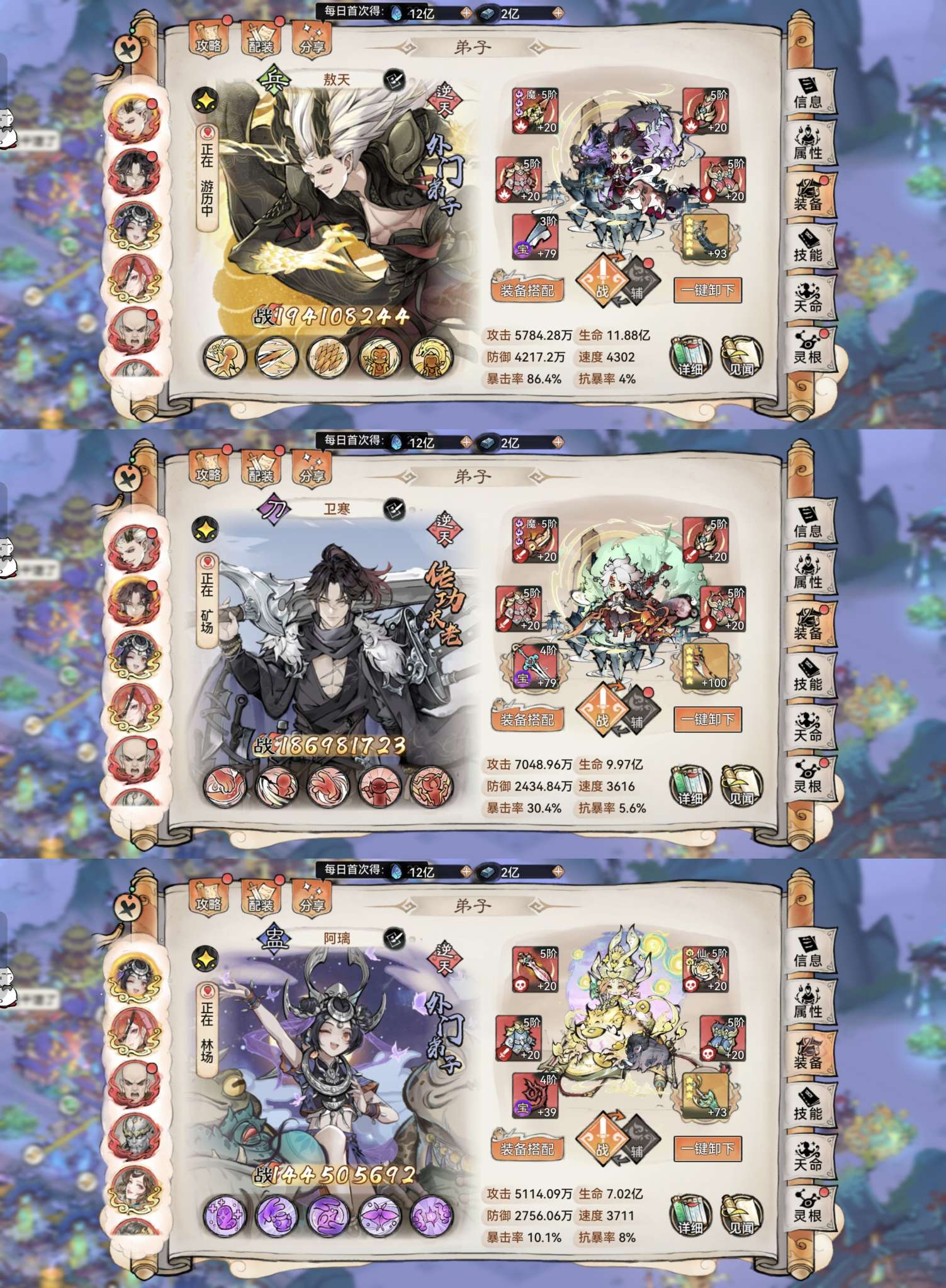 7.6亿战力,1.9亿龙人 1.8亿卫寒还有阿离等十几只高战仙缘三弟子,四阶红法宝,凝3,满星红尘