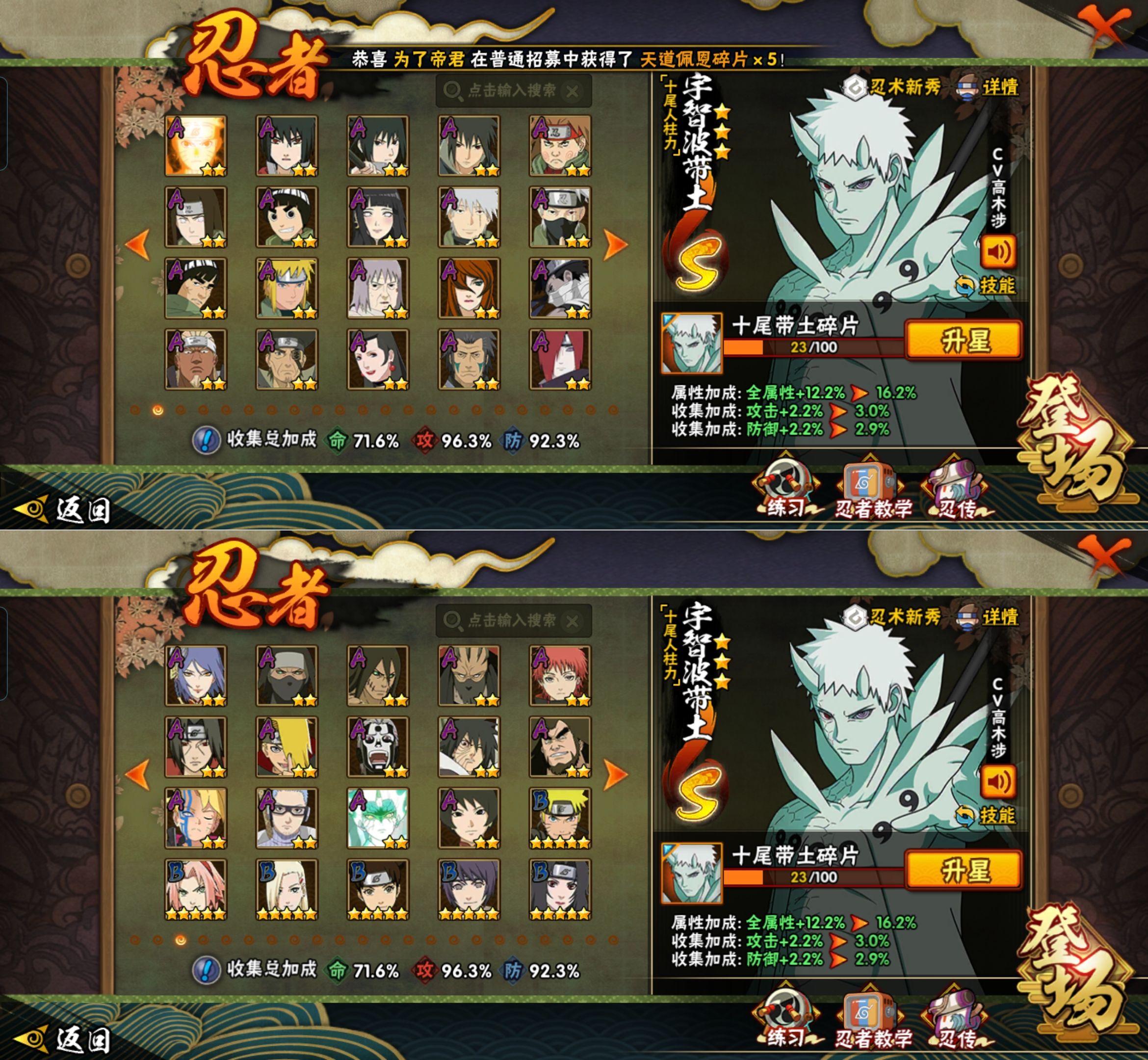 MHY4147【安卓Q v7 14S 40A 19通灵】无二次包【区服】3181【等级】145【S级数量】14【A级数量】40【B级数量】67【C级数量】53【S级】春野樱「忍界大战」 漩涡鸣人「九喇嘛连结」 自来也「舞之豪杰」 佩恩「天道」 宇智波鼬「须佐能乎」 自来也「传说中的三忍」 漩涡鸣人·宇智波佐助 宇智波佐助「永恒万花筒」 大筒木桃式 宇智波斑「秽土转生·解」 宇智波带土「十尾人柱力」 波风水门 艾「忍界大战」 旗木卡卡西「须佐能乎」