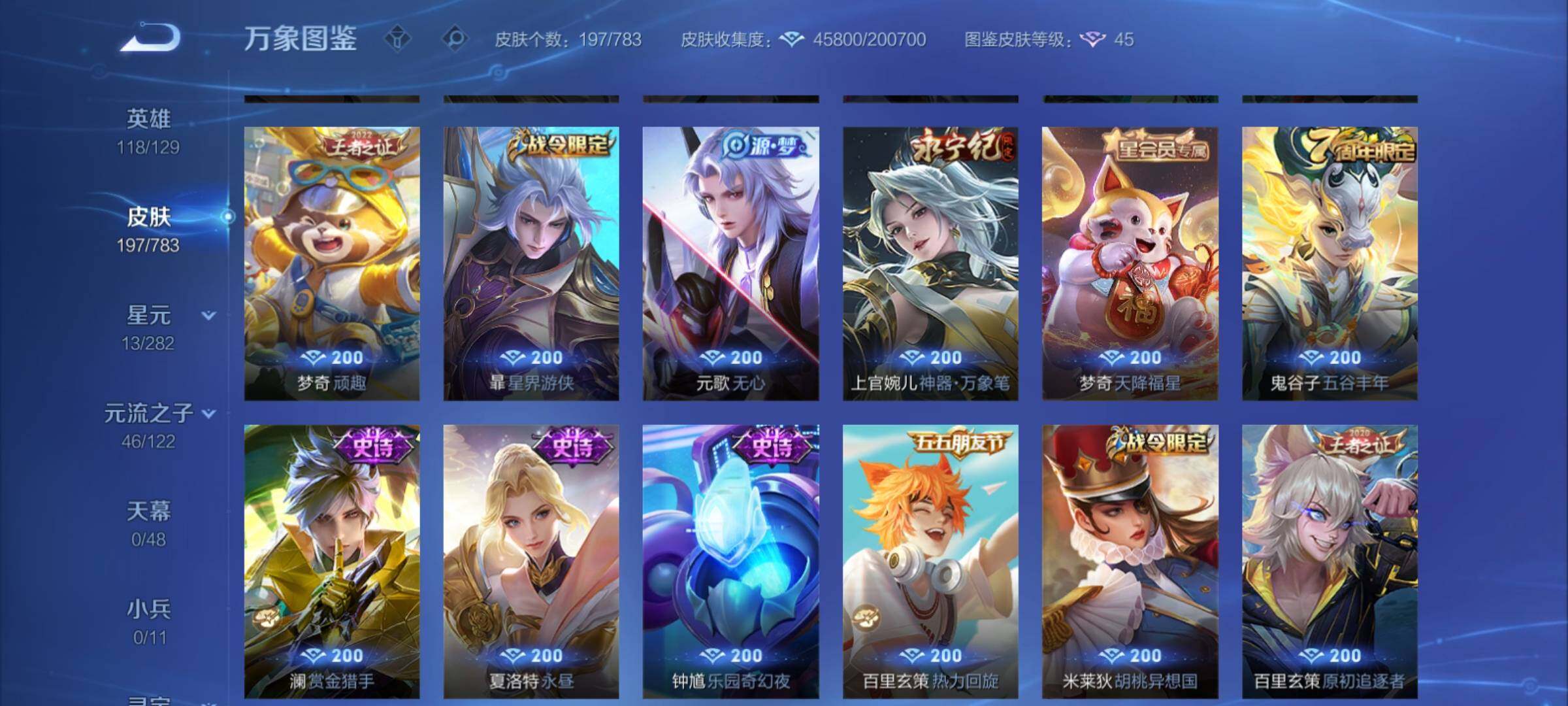 可换绑【高性价比·5无双甄姬小乔诸葛亮曜李白·吕布铠2典藏·怪盗基德嫦娥2珍品·蛇年全套·曜全皮·兔年全套·多传说限定号】30按键,2星传说,12王者印记,五级铭文240,可二次CD30017,安卓WX-V8-197皮肤-2典藏皮肤-5无双-2珍品传说-35传说-69史诗【英雄全皮】:苍全皮,敖隐全皮,曜全皮,夏洛特全皮【荣耀典藏】:铠银白咏叹调,吕布千魇归渊【无双