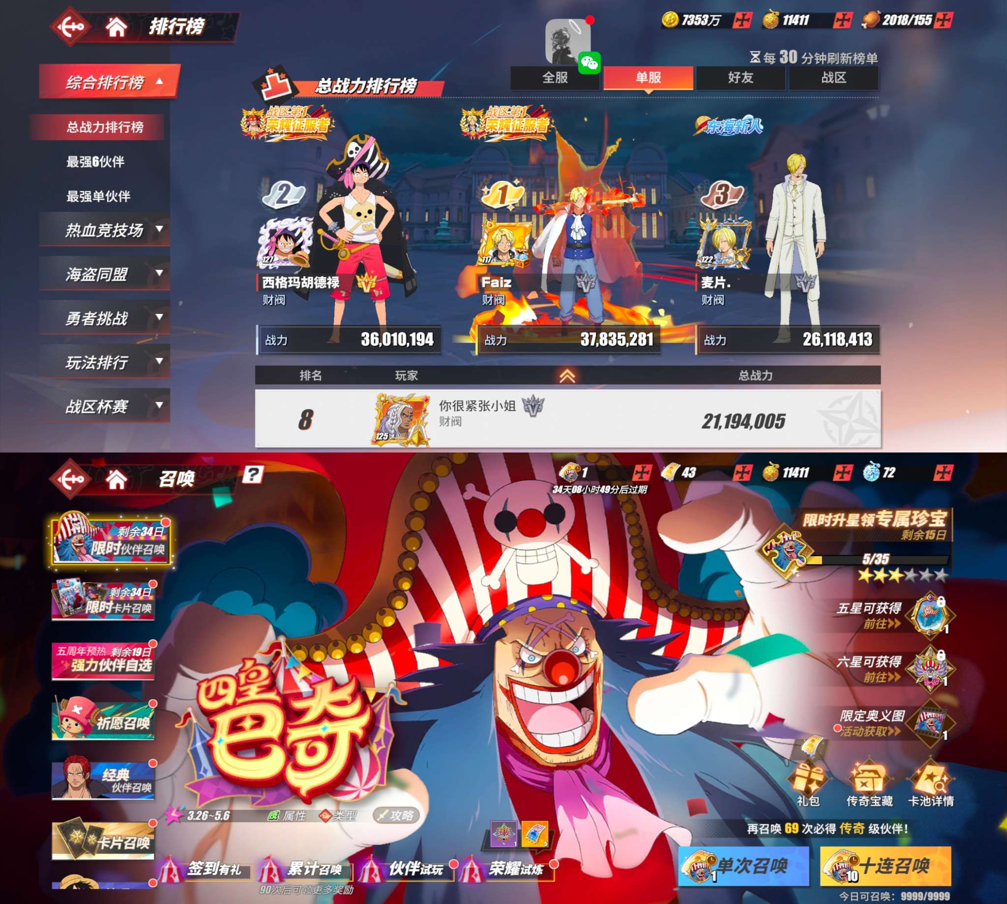 2100w战力 46传奇7强者 98对空友情技 1.1w金果46抽,在榜第8位,账号资源多 伙伴全