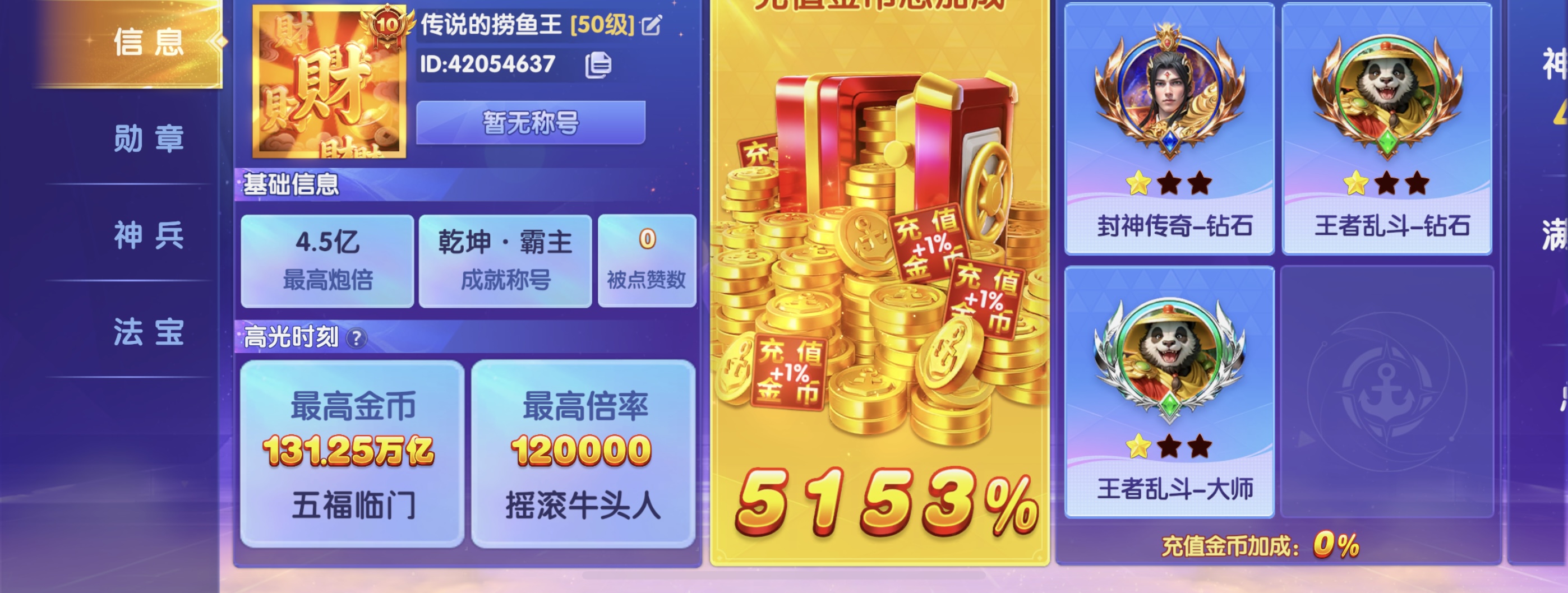 乐乐捕鱼文字号v10,基础炮4.5亿,羁绊看图翻倍18%