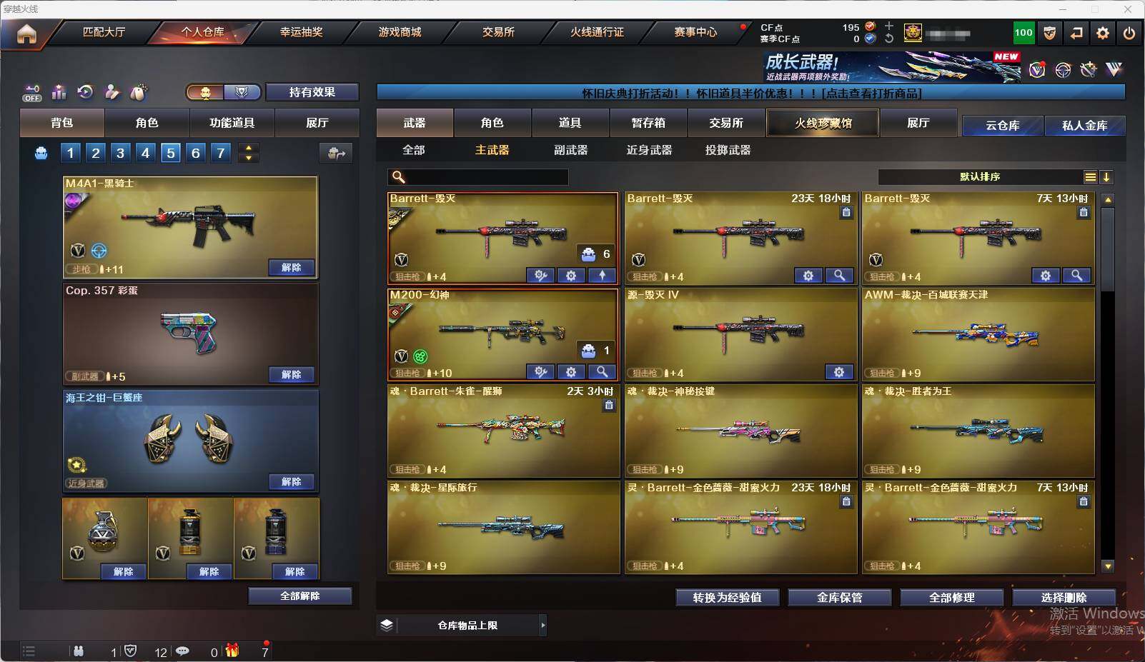 【CFZ335】27V/102级/荣耀元首/1王者/1炫金/幻神三件套/M200_幻神/M4A1_黑骑士/沙鹰_修罗/王者霜心/炫金骑士/M200-幻神音效卡/M200-幻神-黄忠皮肤/幻神-降龙/火麒麟-心动糖果/毁灭耀金皮肤/毁灭-英雄计划 皮肤/黑骑士-战神马超/王者沙漠玫瑰/奇洋探员/乔伊教练/修道士/云海玲珑/暗夜-X/嘉年华灵狐/灵狐者-X/麻雀/曼陀罗-礼服/潘多拉-X/斯沃特-X/铁骑荣耀/兔囡囡/AWM-灵狐-15周年嘉年华/迷你深渊冰龙/迷你波特博士/夺魂/深渊终结者手雷/超