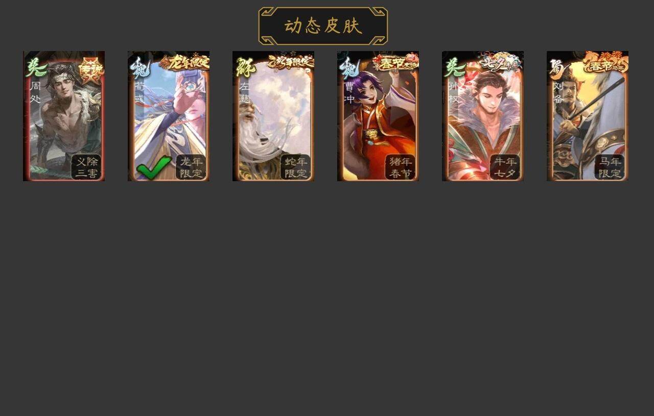 官阶:骠骑将军;VIP等级:VIP4;史诗武将数量:9;动态皮肤数量:6;武将