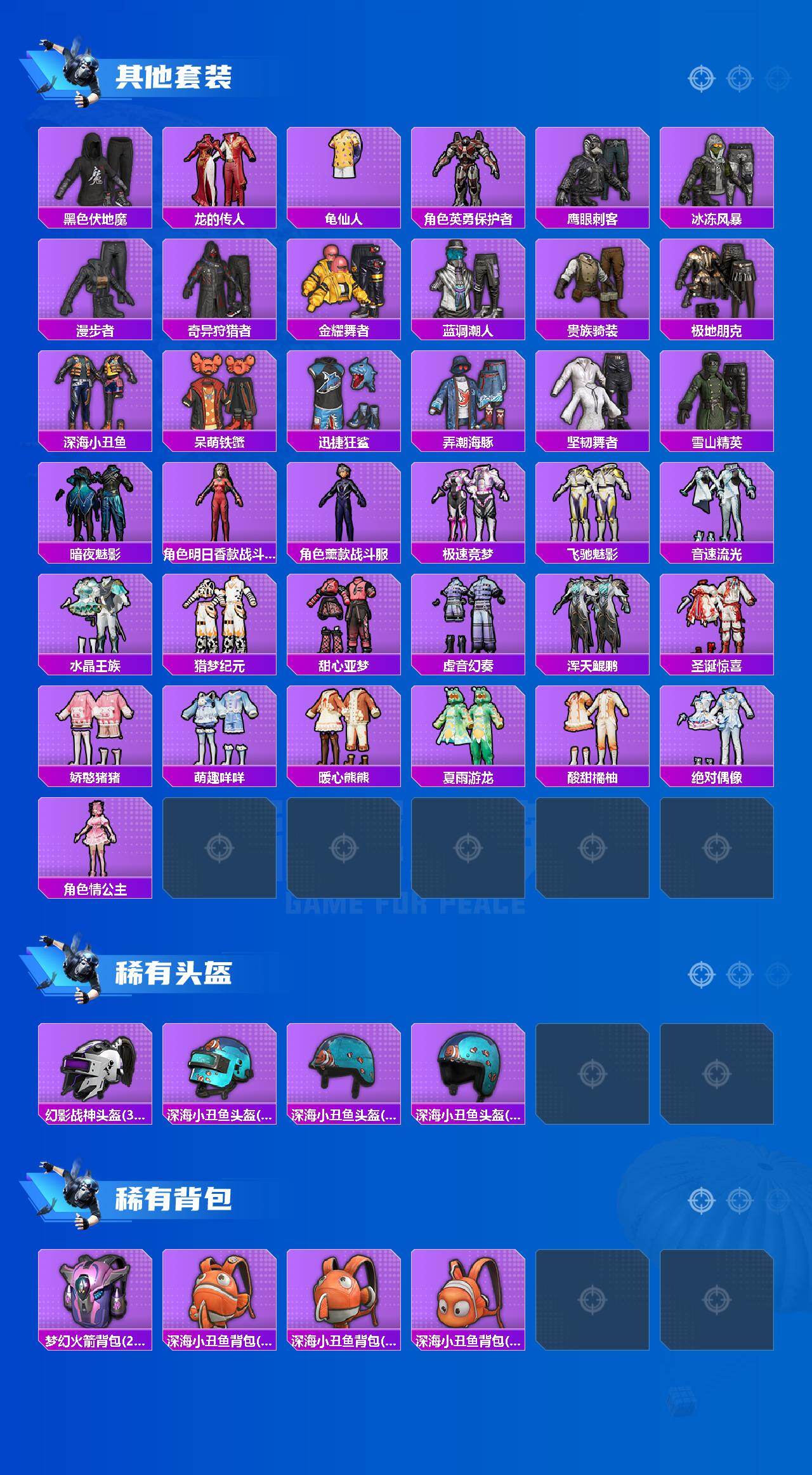【热门品类】:套装-浪漫天命,套装-都市猎人,套装-深海小丑鱼,套装-小丑鱼,套装-奇异狩猎者,角色-军刀雅典娜,套装-忍者信条,套装-龟仙人,套装-暗影哥特,套装-粉红小猪