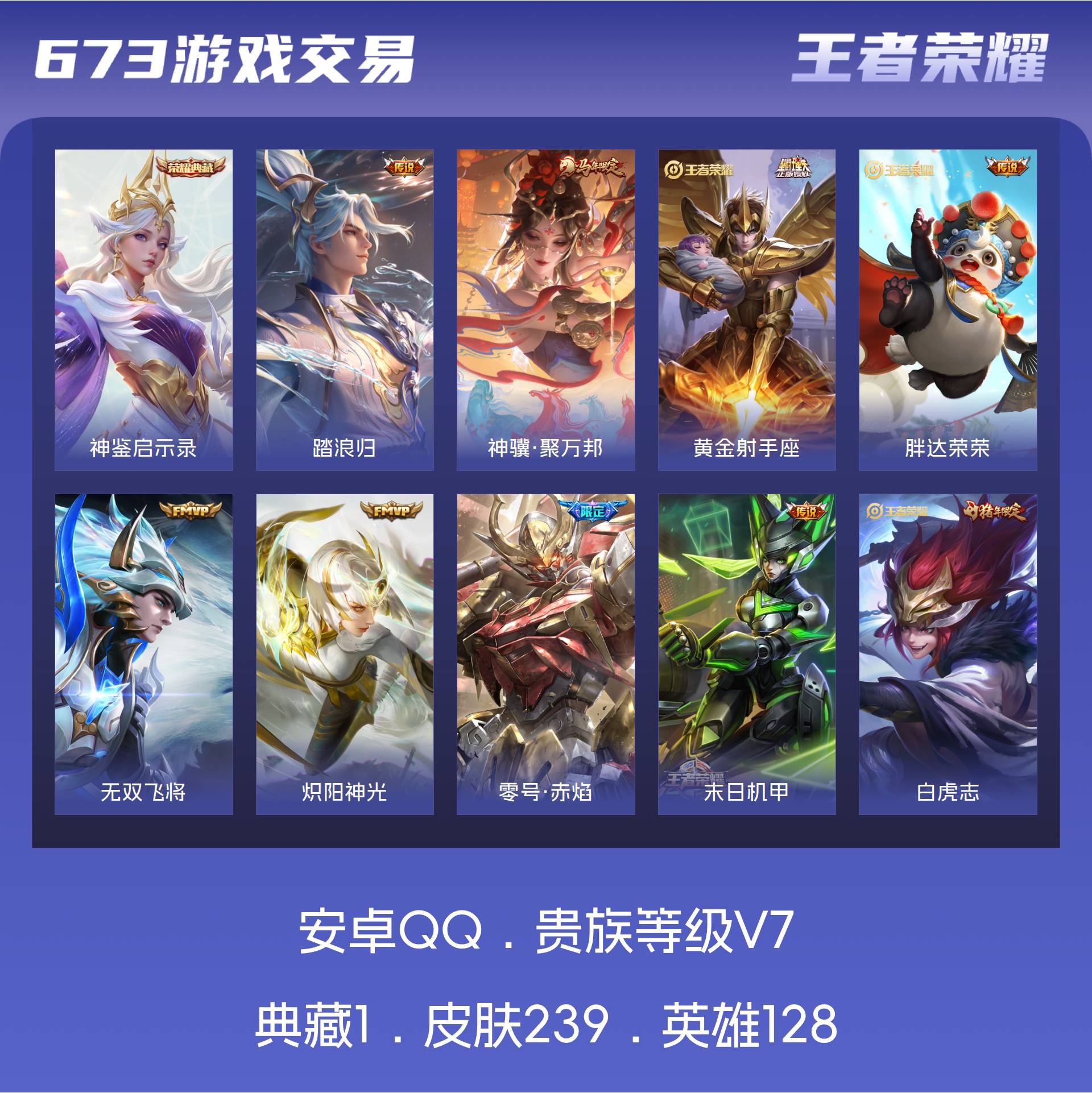 V7 皮肤239 英雄128 永恒钻石 荣耀典藏1 星传说1 传说12