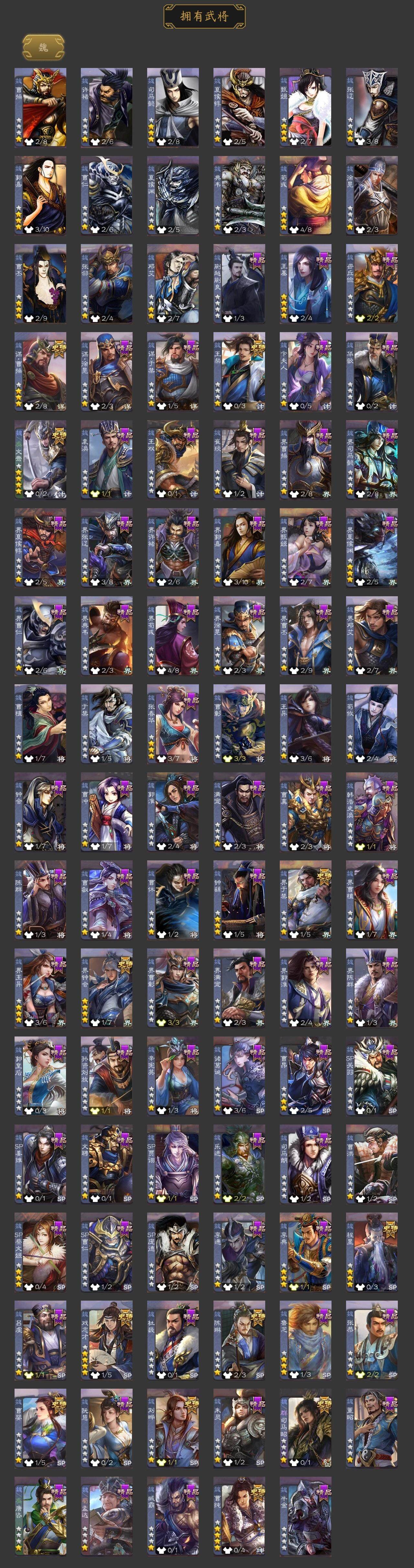 神赵云,神张辽,神荀彧,王粲,谋曹操,界钟会,界于禁,陈琳,曹婴,曹纯,戏志才,刘晔,程昱,马云騄,谋马超,诸葛瞻,赵襄,张星彩,王平,沙摩柯,界黄忠,花鬘,吴景,界朱然,贺齐,文
