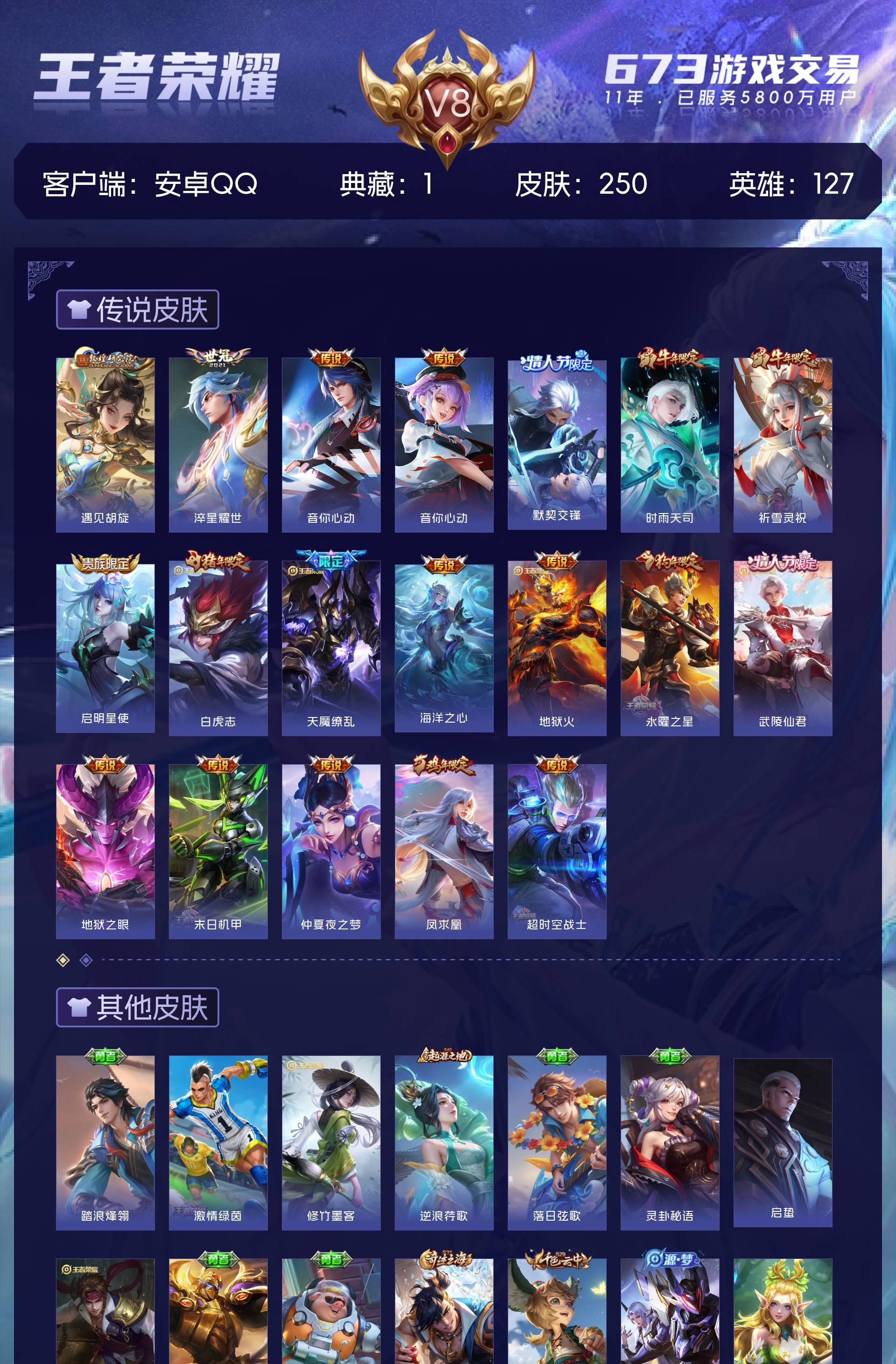 V8 皮肤250 英雄127 荣耀黄金 荣耀典藏1 传说19
