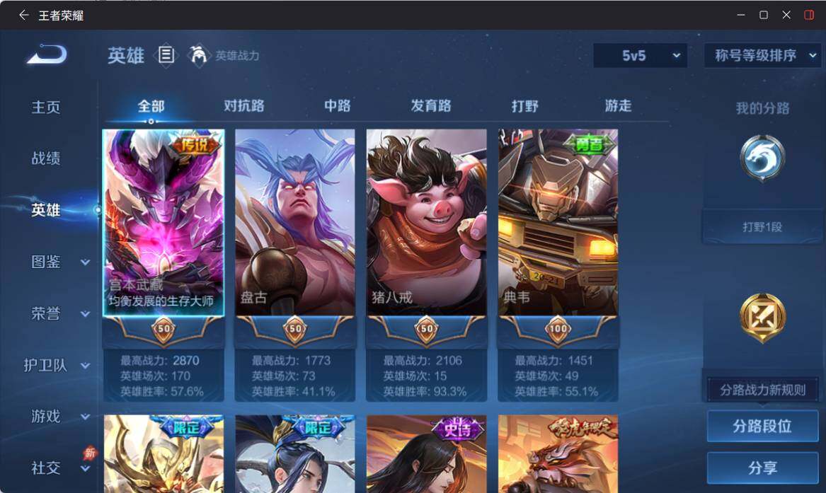 【16776589】安卓Q-V5-至尊星耀III段位-80英雄-66皮肤-2传