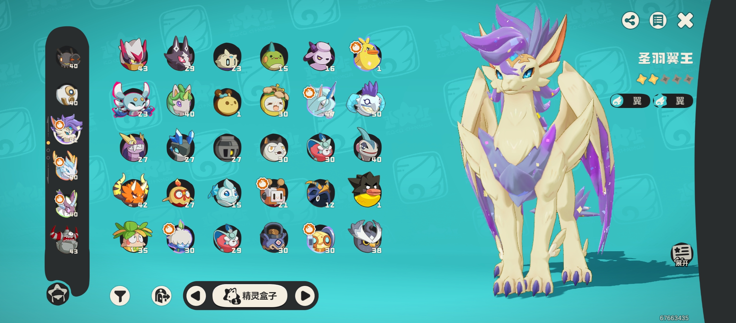 37级账号,圣羽翼王在手,该抓的基本都抓,精灵多,养成进度高,地图锚点全开,现有2棱镜球,12国王球