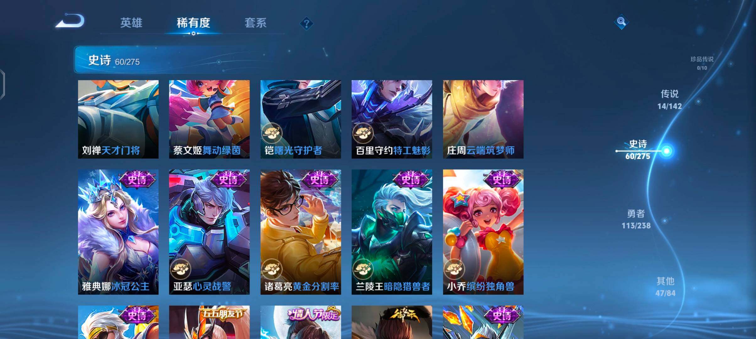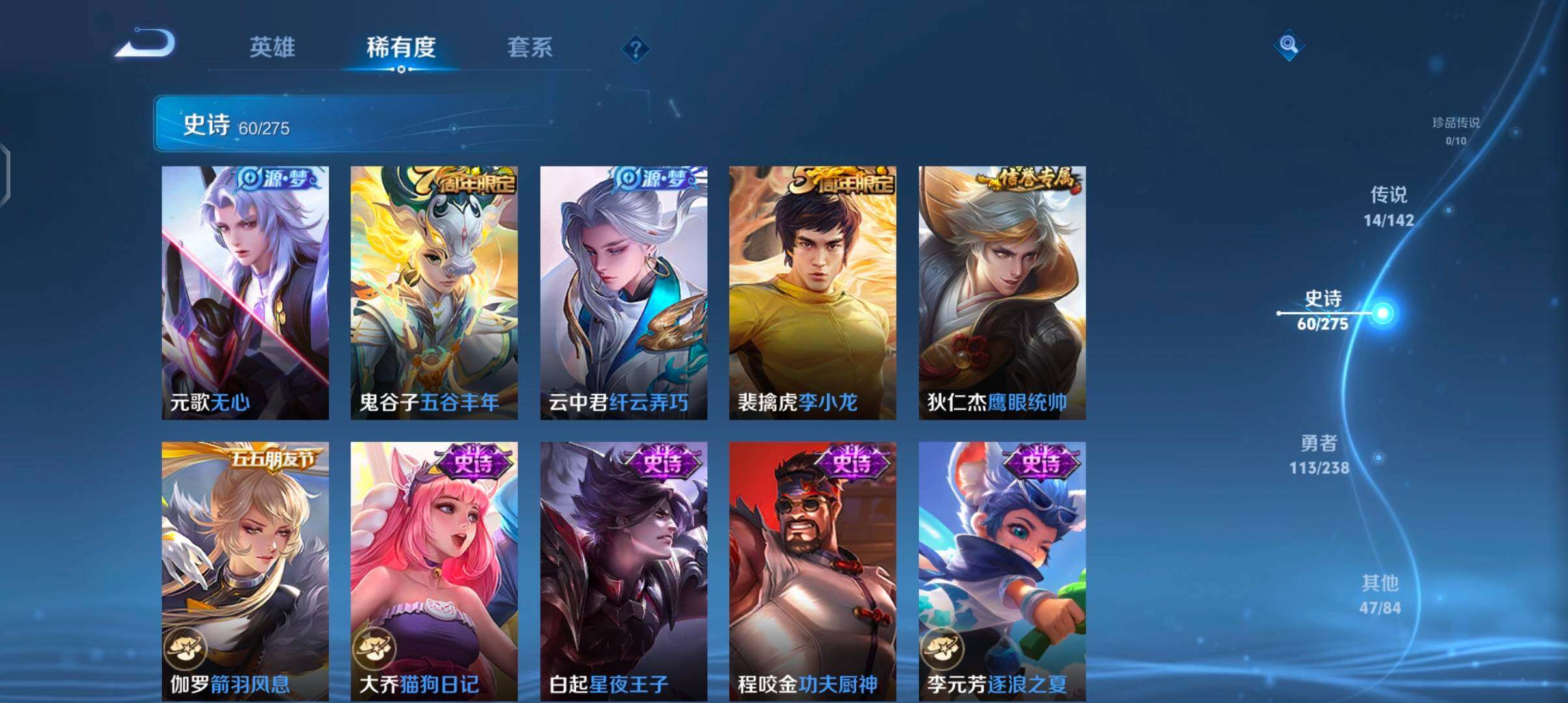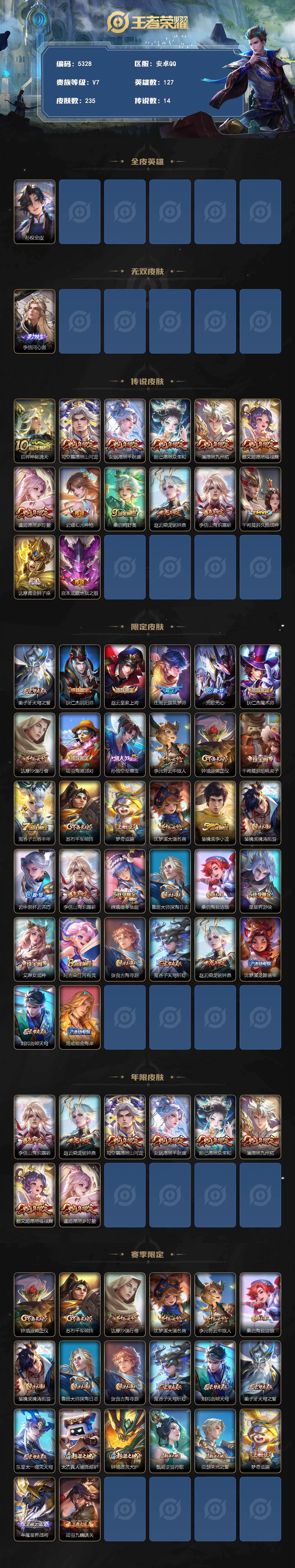 安卓Q-V7-最强王者段位-127英雄-235皮肤-1无双-14传说-59史诗