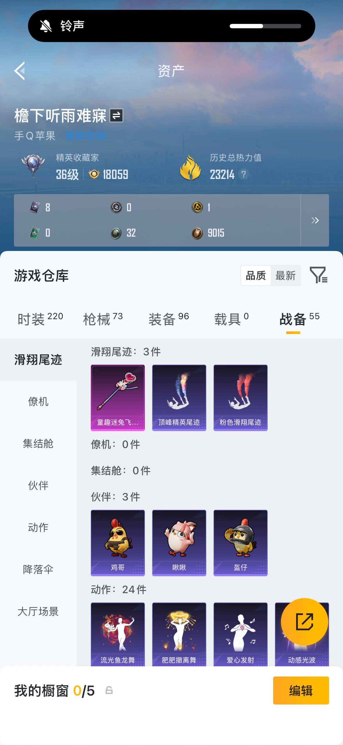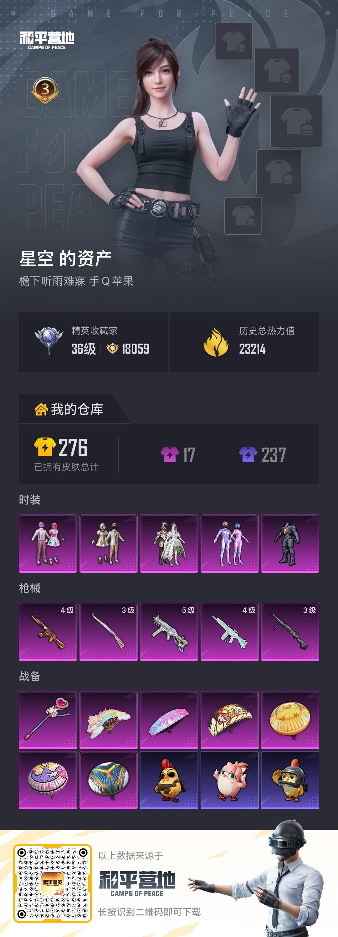 52套装/枪械5/装备96/战备55/王牌印记3/热力值2321