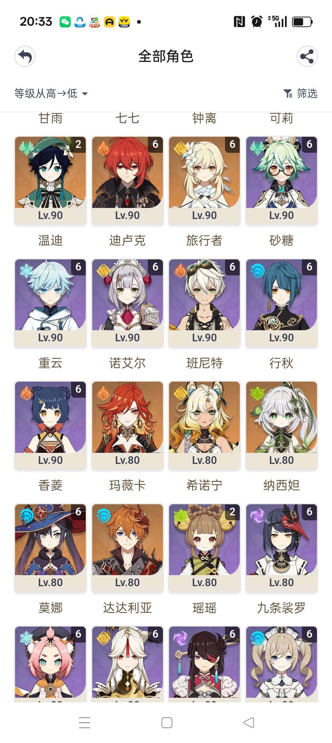 6命夜兰6命雷电6命钟离6申鹤6神里绫华6胡桃6万叶6七七6迪卢克6莫娜还有很多满的