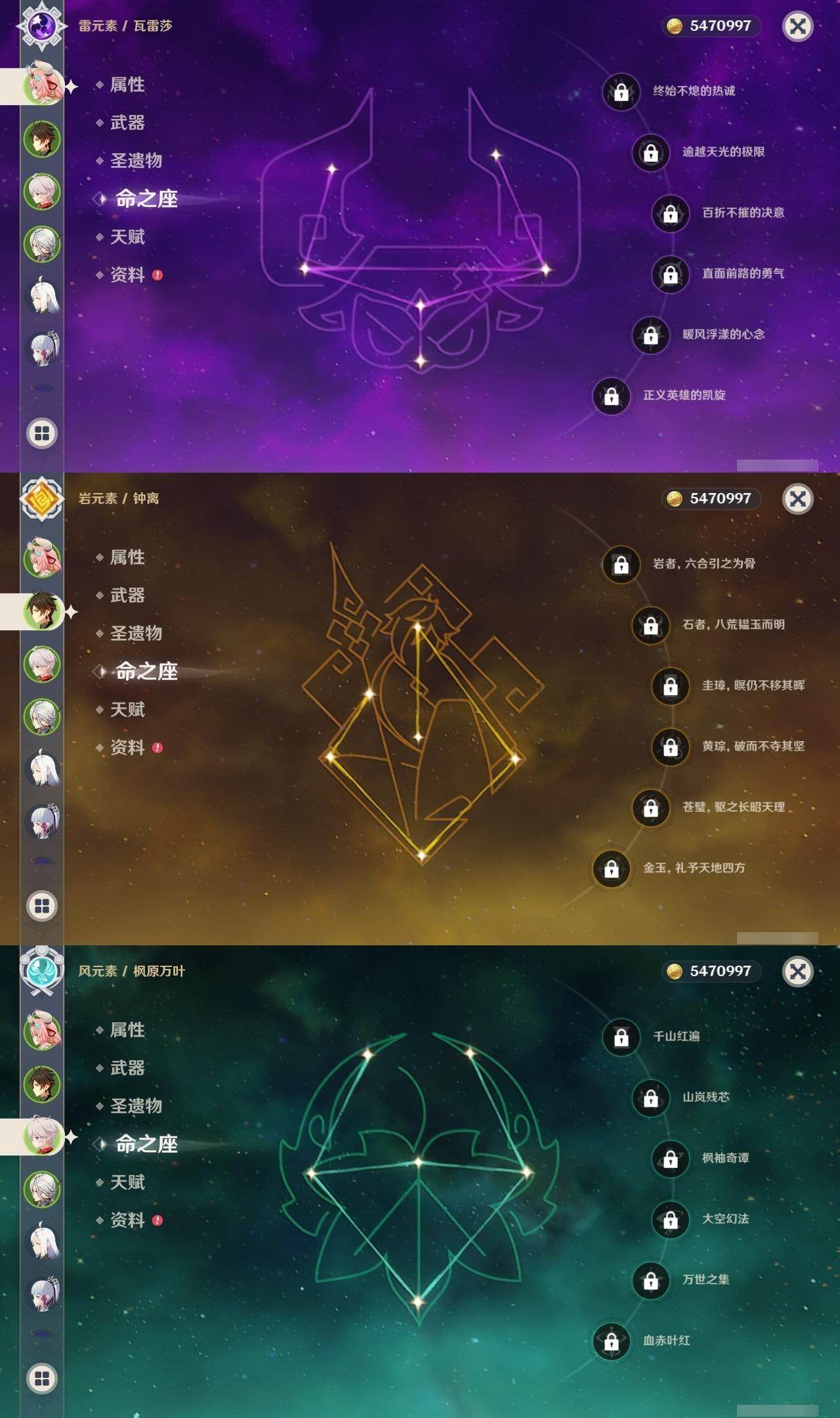 0命阿蕾奇诺,0命闲云,0命那维莱特,0命流浪者,0命纳西妲,0命提纳里,0命申鹤,0命雷电将军,0命枫原万叶,0命神里绫华,0命钟离,0命胡桃,0命宵宫,4命刻晴,1命七七,1命琴,0命莫娜,1命迪卢克,0命瓦雷莎,0命丝柯克,精1赤月之形,精1千夜浮梦,精1赤沙之杖,精1薙草之稻光,精1雾切之回光,精1苍古自由之誓,精1护摩之杖,精1磐岩结绿,精1四风原典,精1阿莫斯之弓,精1天空之卷