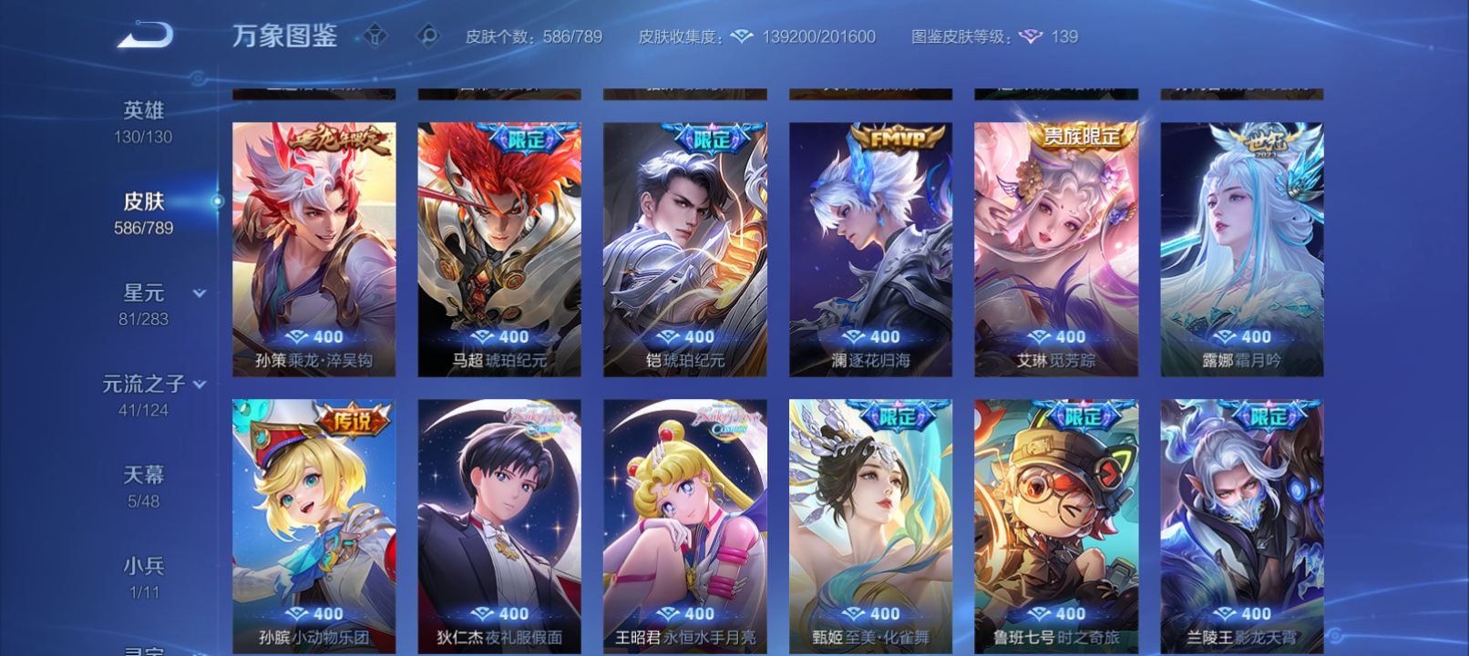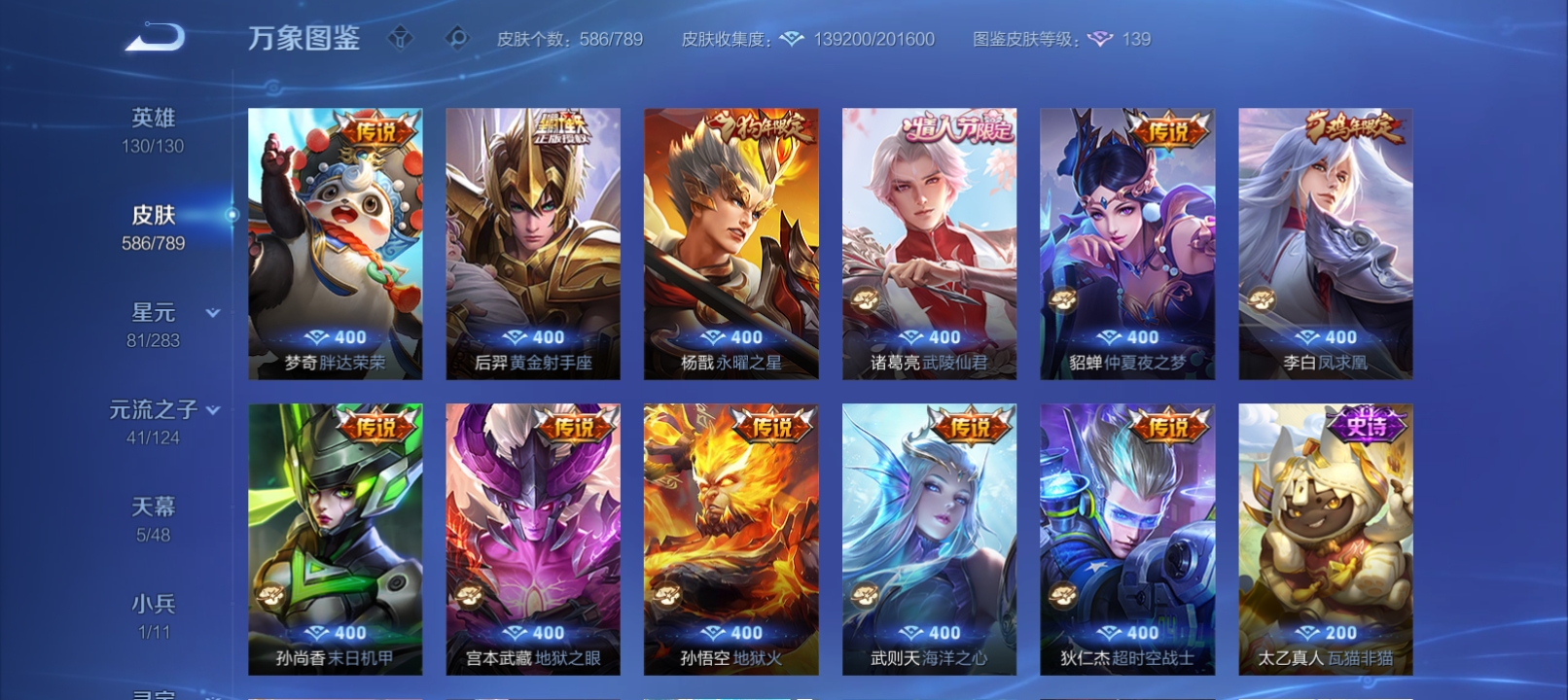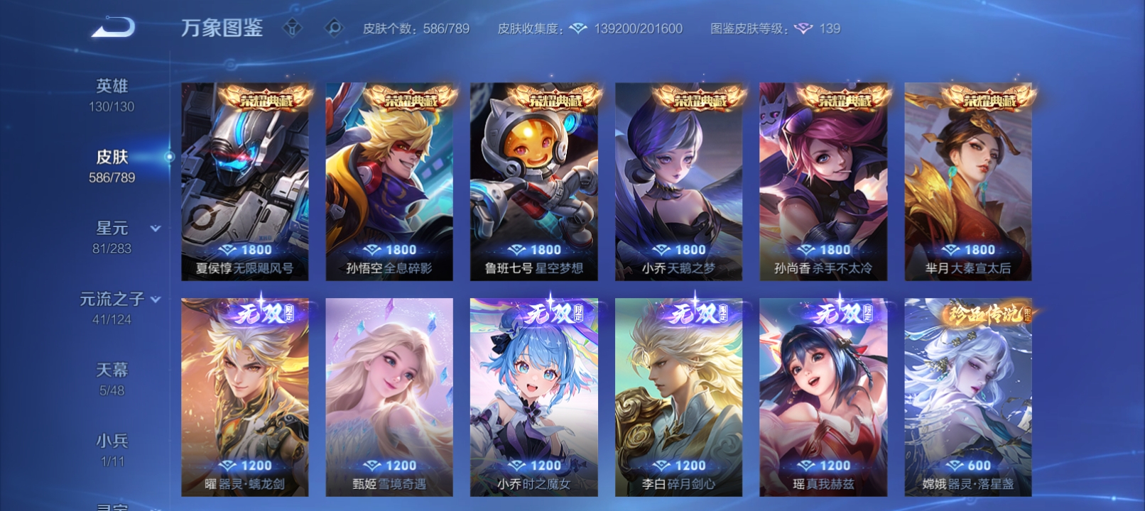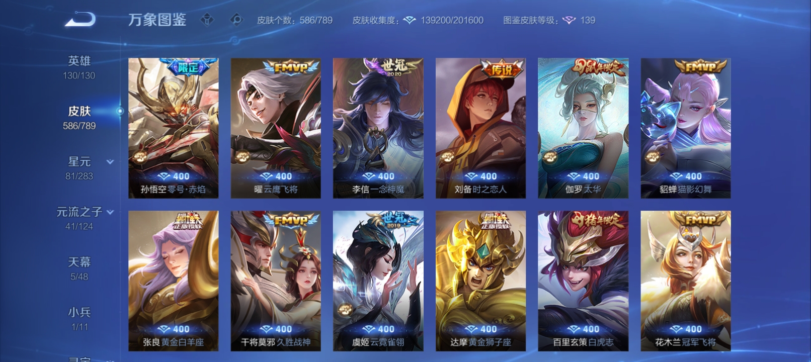 差两个满荣耀,各种皮肤,好久没玩了