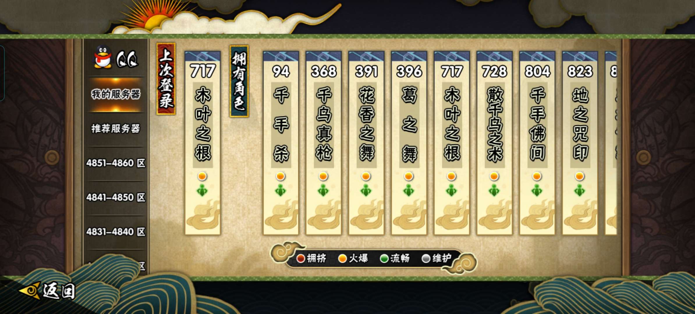 200+区多鸣佐青春凯马南限时点券A(有金币,可抽A忍首付),有些区被重置了; 主区717,20多S