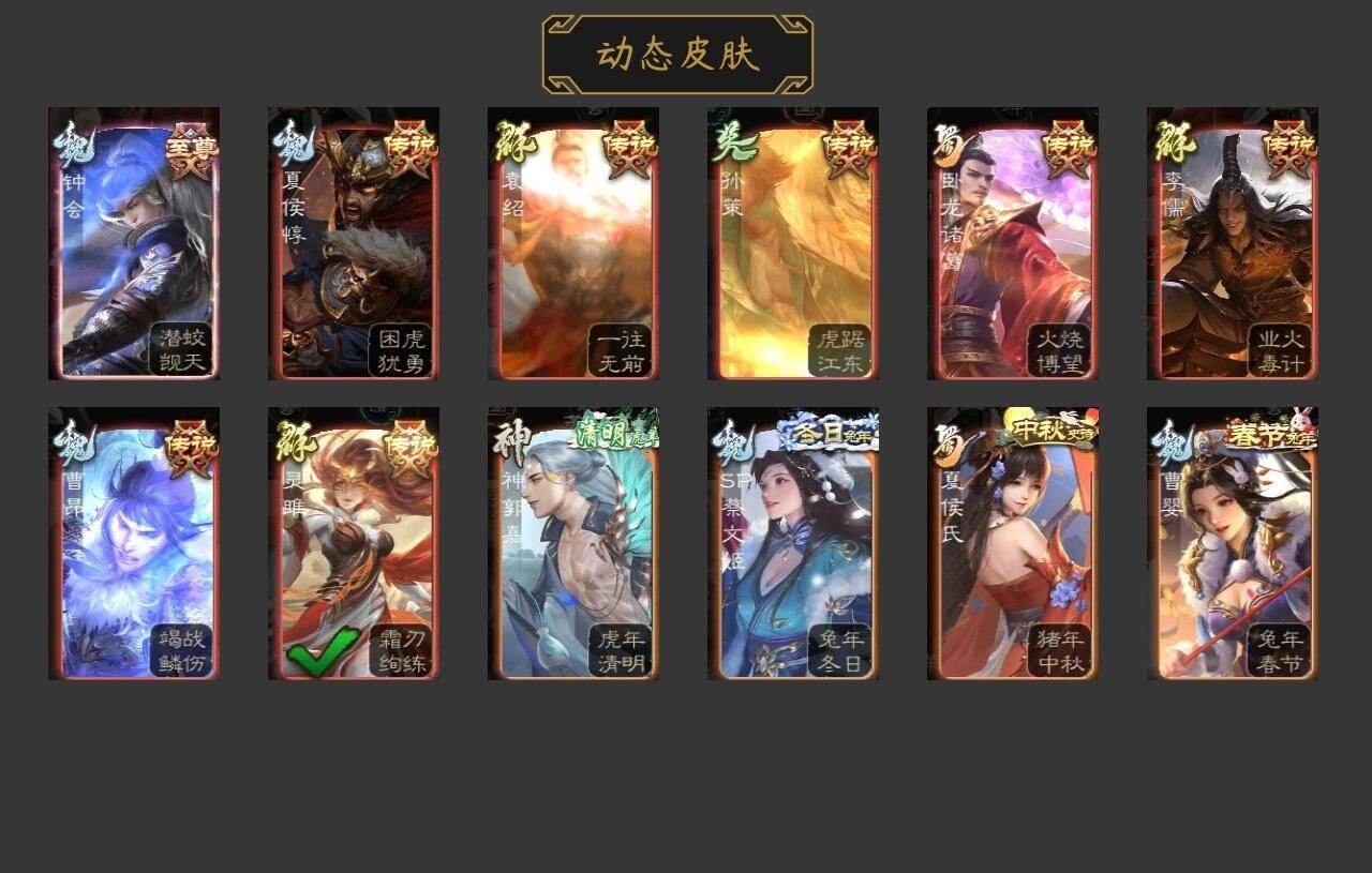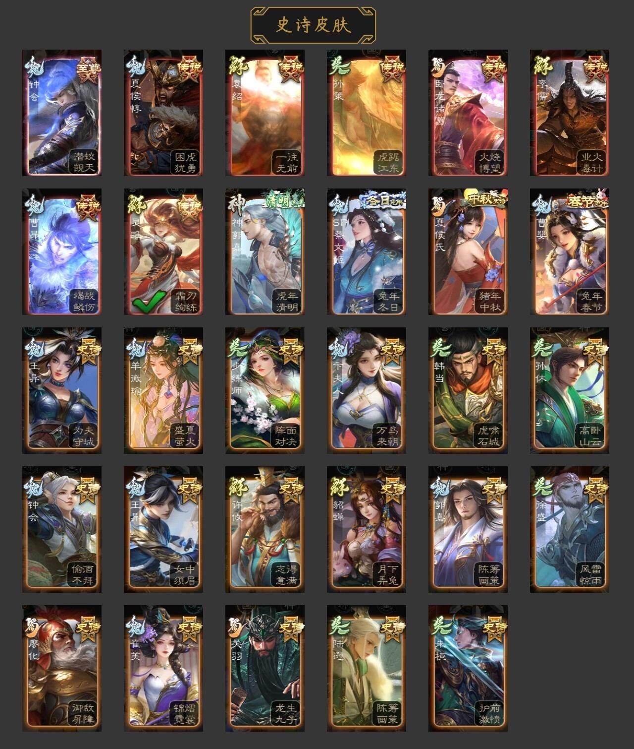 官阶:骠骑将军;VIP等级:VIP9;史诗武将数量:12;动态皮肤数量:12;