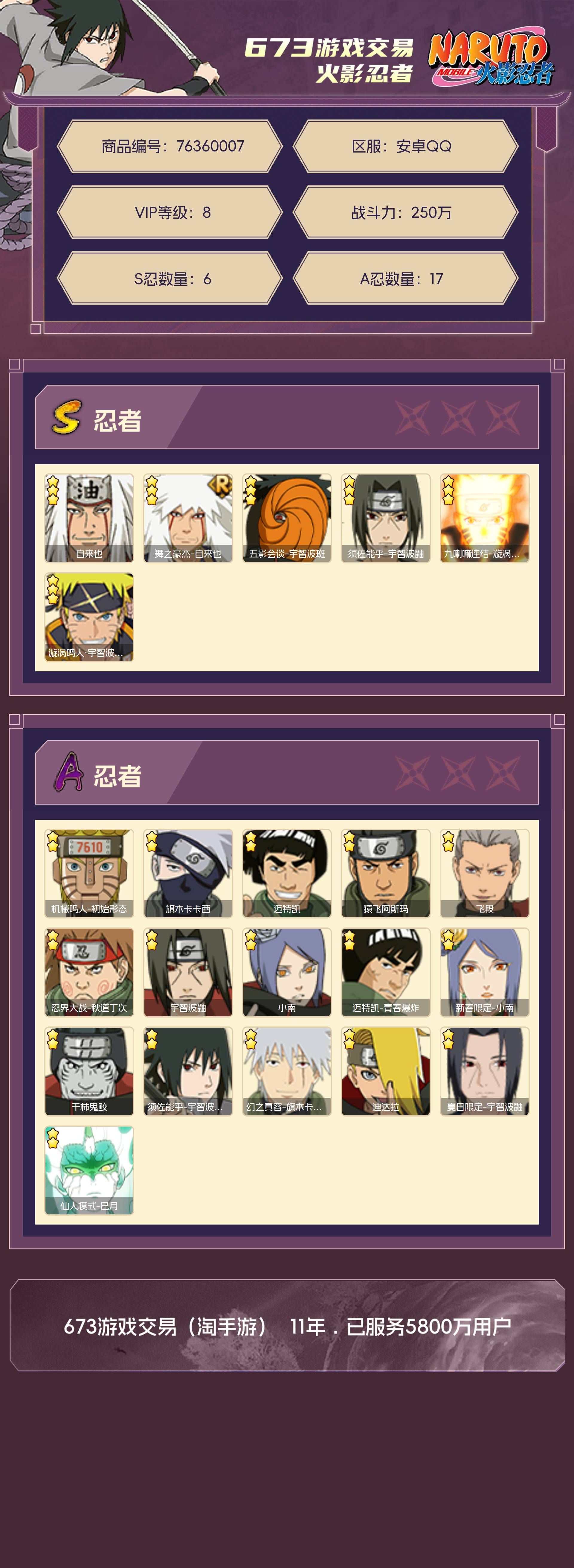 角色等级113 金币2000 战斗力250万 S忍6 A忍17 5星S忍者3 8 段位上忍