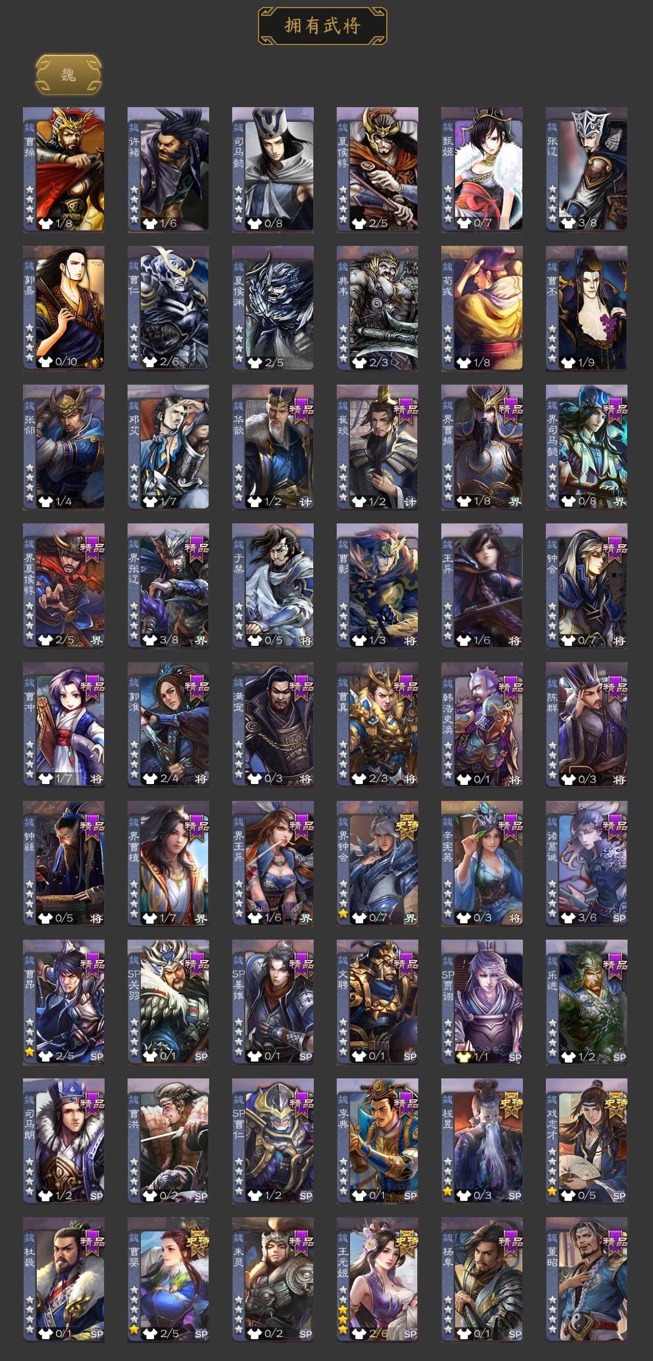 神司马懿,王元姬,界钟会,曹婴,戏志才,程昱,花鬘,董允,SP关羽,SP曹仁,乐进,曹昂,诸葛诞,朱灵,文聘,SP姜维,钟会,曹冲,郭淮,满宠,界王异,界曹操,界司马懿,界夏侯惇,界张辽,