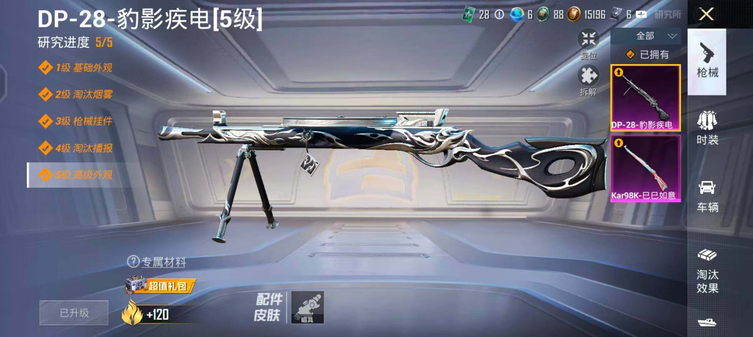 【FK6728】58套装/枪械2/装备70/载具1/战备47/王牌印记2/热力值16182/三级Kar98K-巳巳如意/五级DP-28-豹影疾电/保时捷918 Spyder(液态银)/Kar98K-巳巳如意/DP-28-豹影疾电/炫彩糖果飞行器/极意拳锋飞行器/星之彼岸降落伞/喜羊羊与灰太狼降落伞/炫彩糖果降落伞/虎痴许褚降落伞/套装-雪国风尚/套装-炫彩糖果/角色-绛羽幽主/套装-朱霞炽焰/套