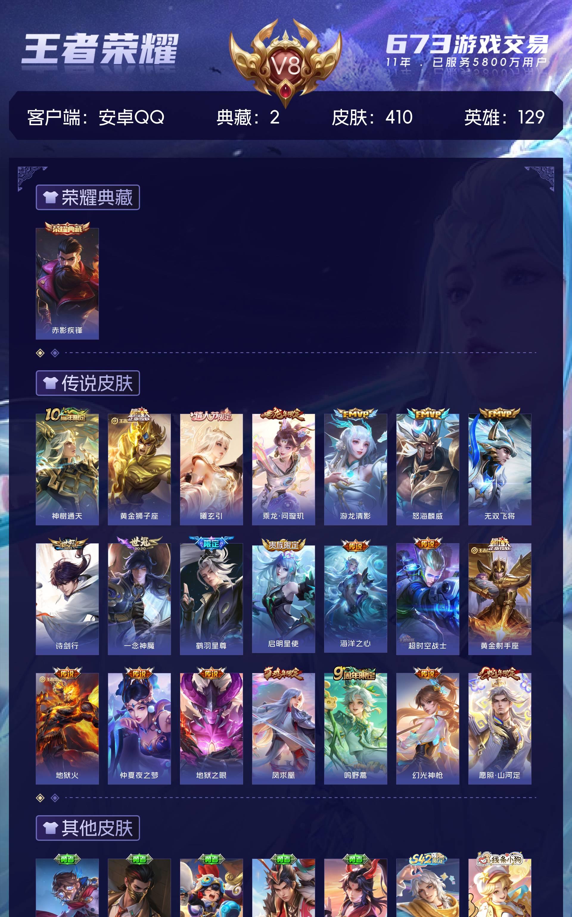 V8 皮肤410 英雄129 尊贵铂金 荣耀典藏2 传说21