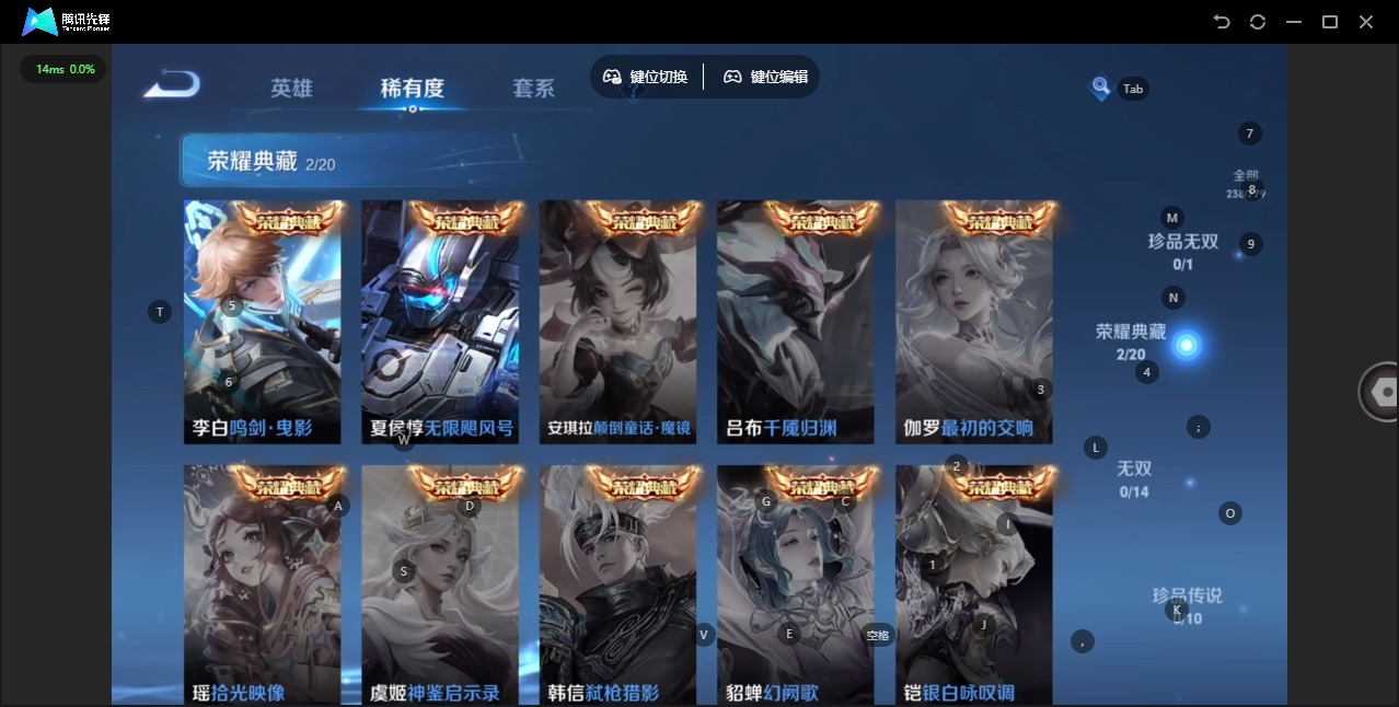 V7 2典藏 14传说 126英雄 238皮肤 可修改实名 男号