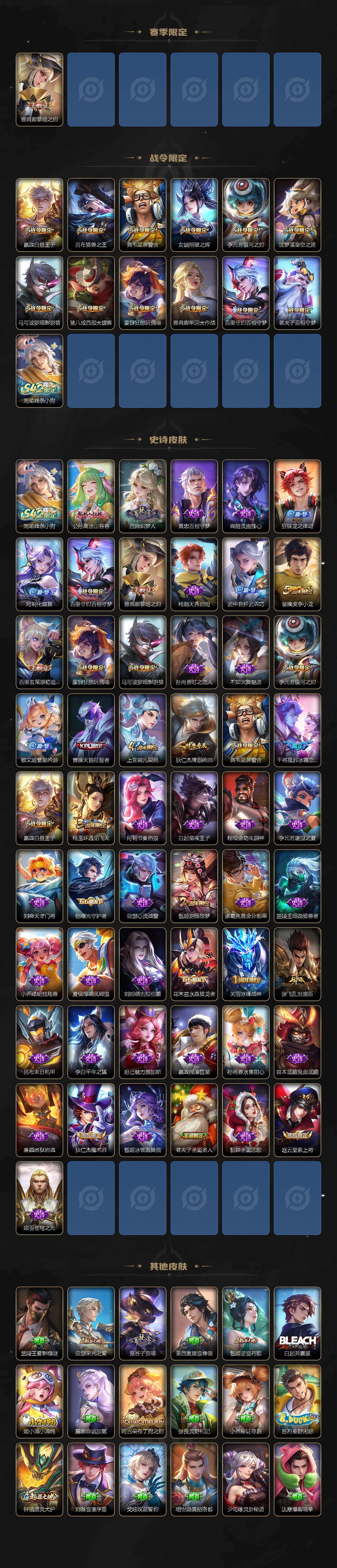 【JX1954】贵族7/皮肤245/传说5/史诗54/英雄127/金标铠/金标嬴政/金标司马懿/司马懿九山相柳/妲己-愿照·众生和/澜-愿照·九州拓/宫本武藏-地狱之眼/孙悟空-地狱火/白起-狰/狄仁杰-阴阳师/虞姬-凯尔特女王/赵云-皇家上将/嬴政-白昼王子/庄周-蜃楼王/高渐离-死亡摇滚/高渐离-玩趣恶龙/孙膑-妖精王/扁鹊-炼金王/芈月-重明/吕布-猎兽之王/夏