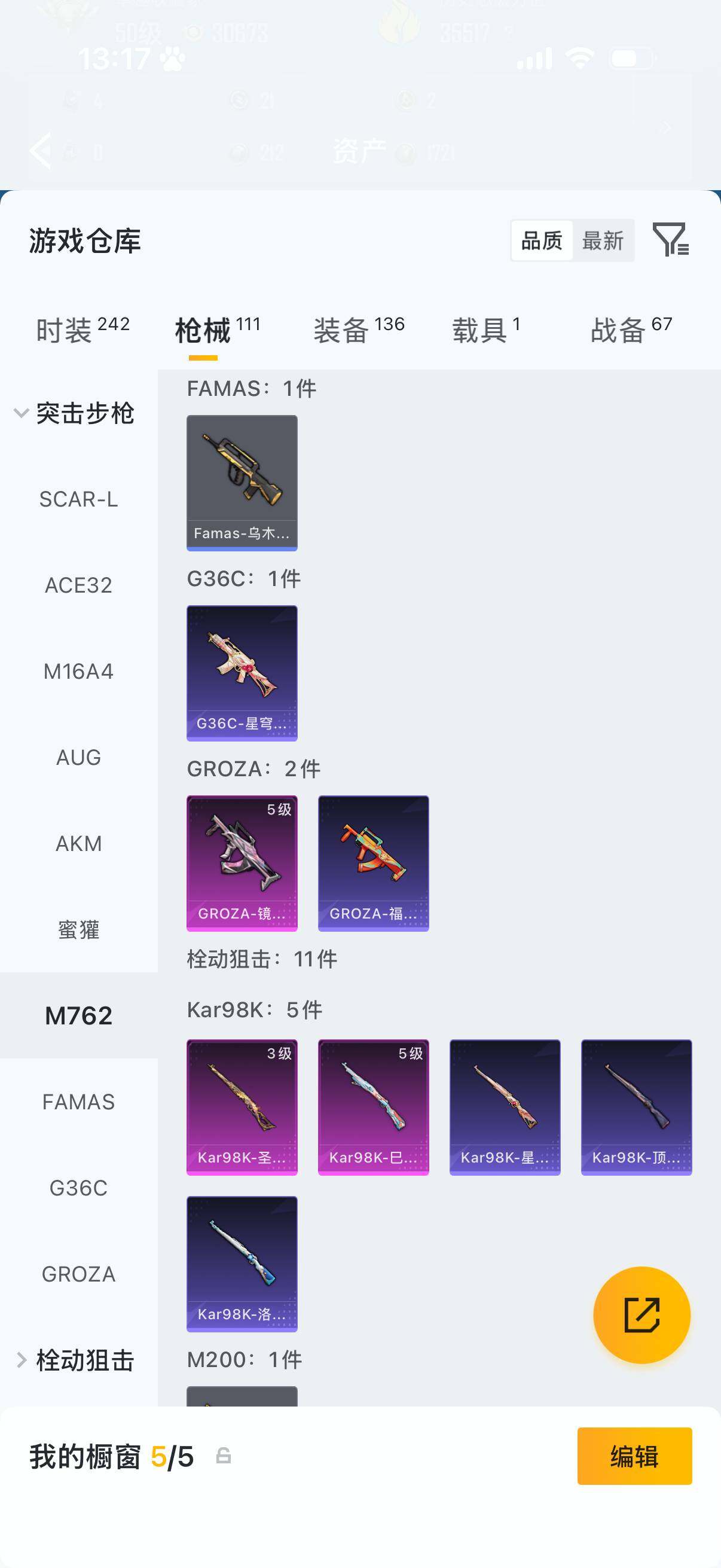 【粉色枪皮等级】:GROZA-镜光银凌(五级),AUG-暖羊咩咩(五级),M762-青锋波束