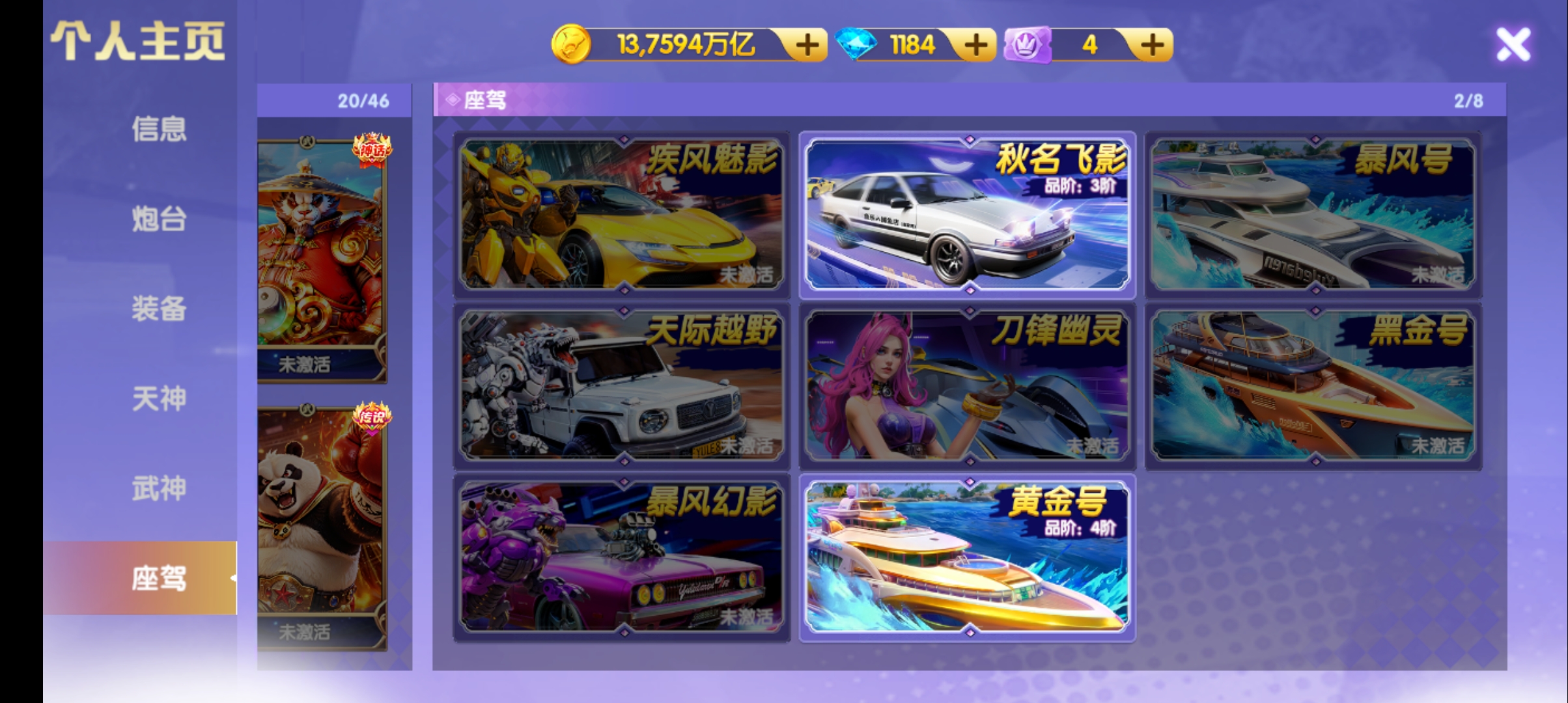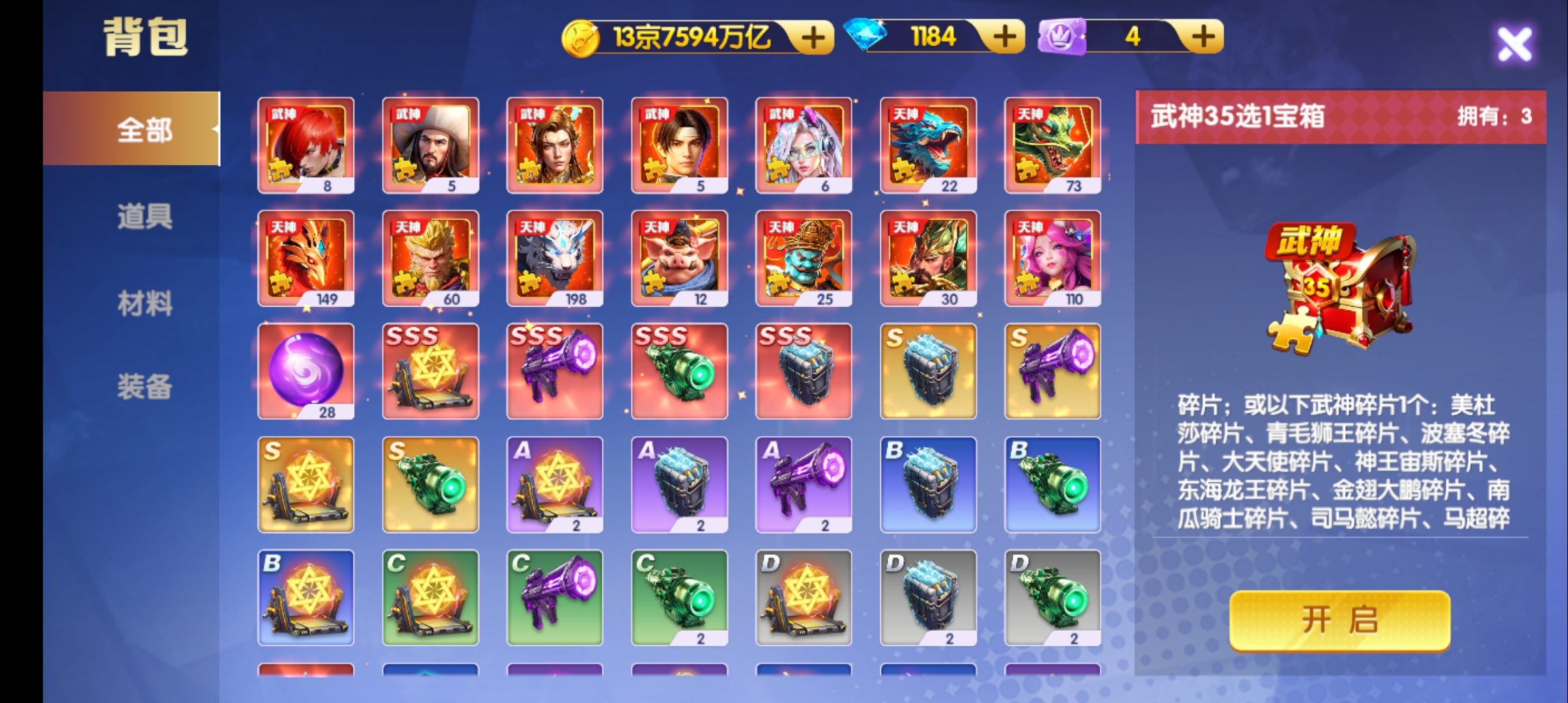 V7-20个武神-四神装-13京-1800连击-3级洪荒