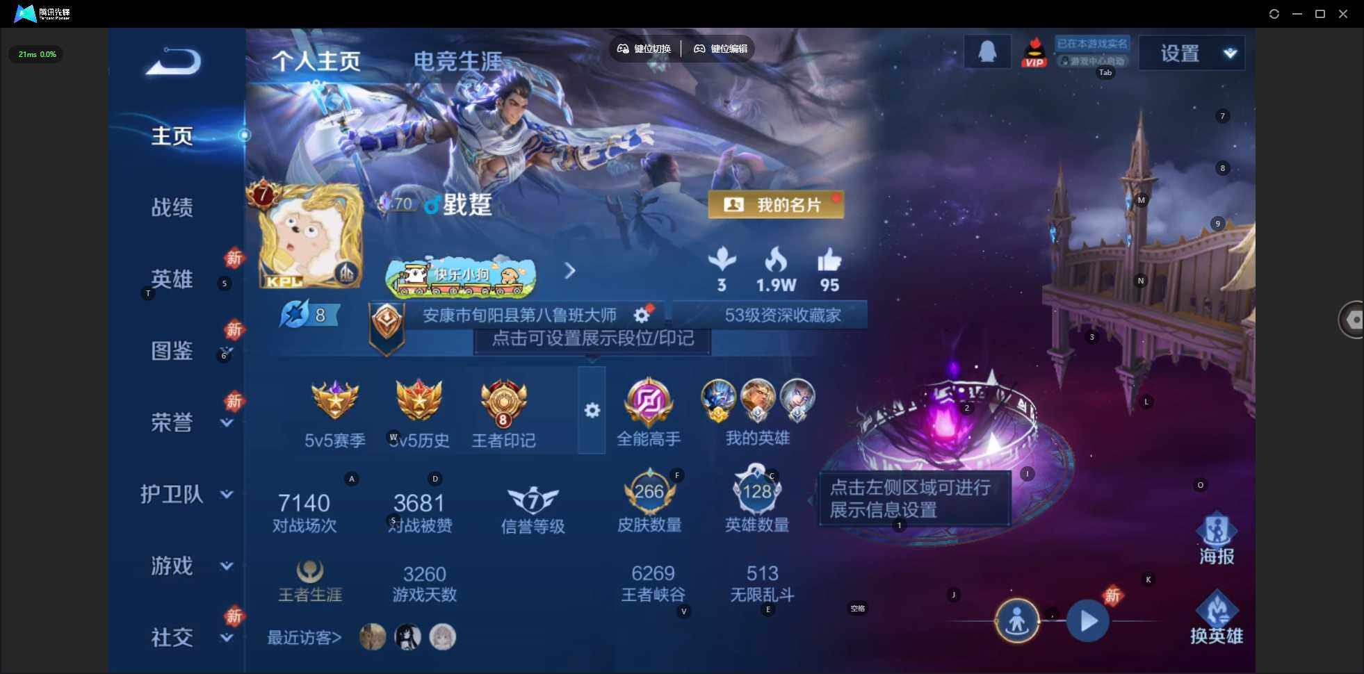 V7-最强王者段位-128英雄-266皮肤-2典藏皮肤-2珍品传说-13传说-64史诗