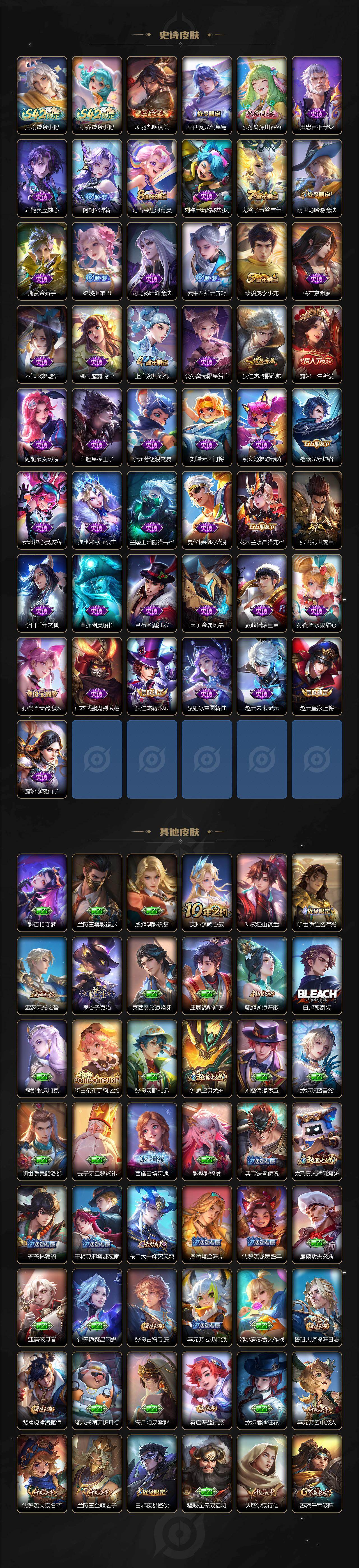 V6-最强王者段位-126英雄-209皮肤-1典藏皮肤-9传说-48史诗