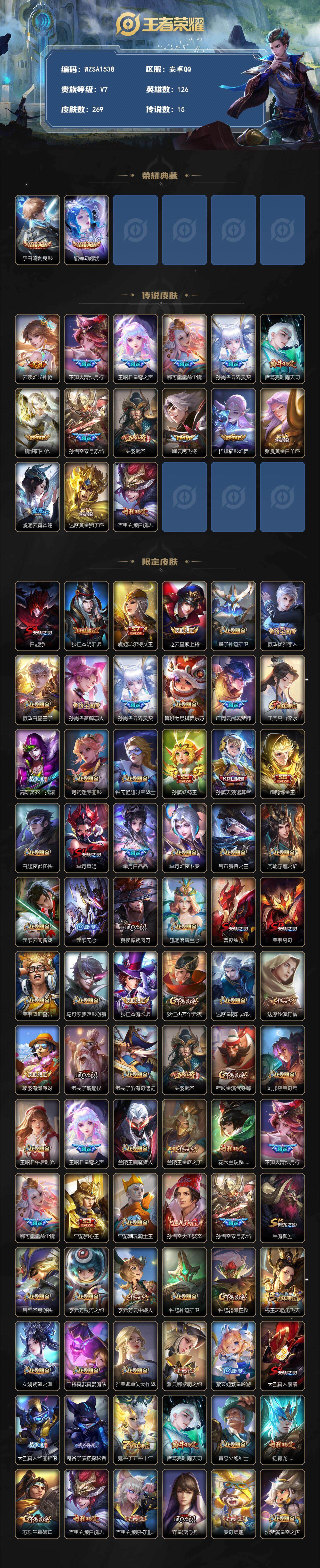 贵族7/皮肤269/典藏2/传说15/史诗82/英雄126/李白-鸣剑·曳影/貂蝉-幻阙歌/