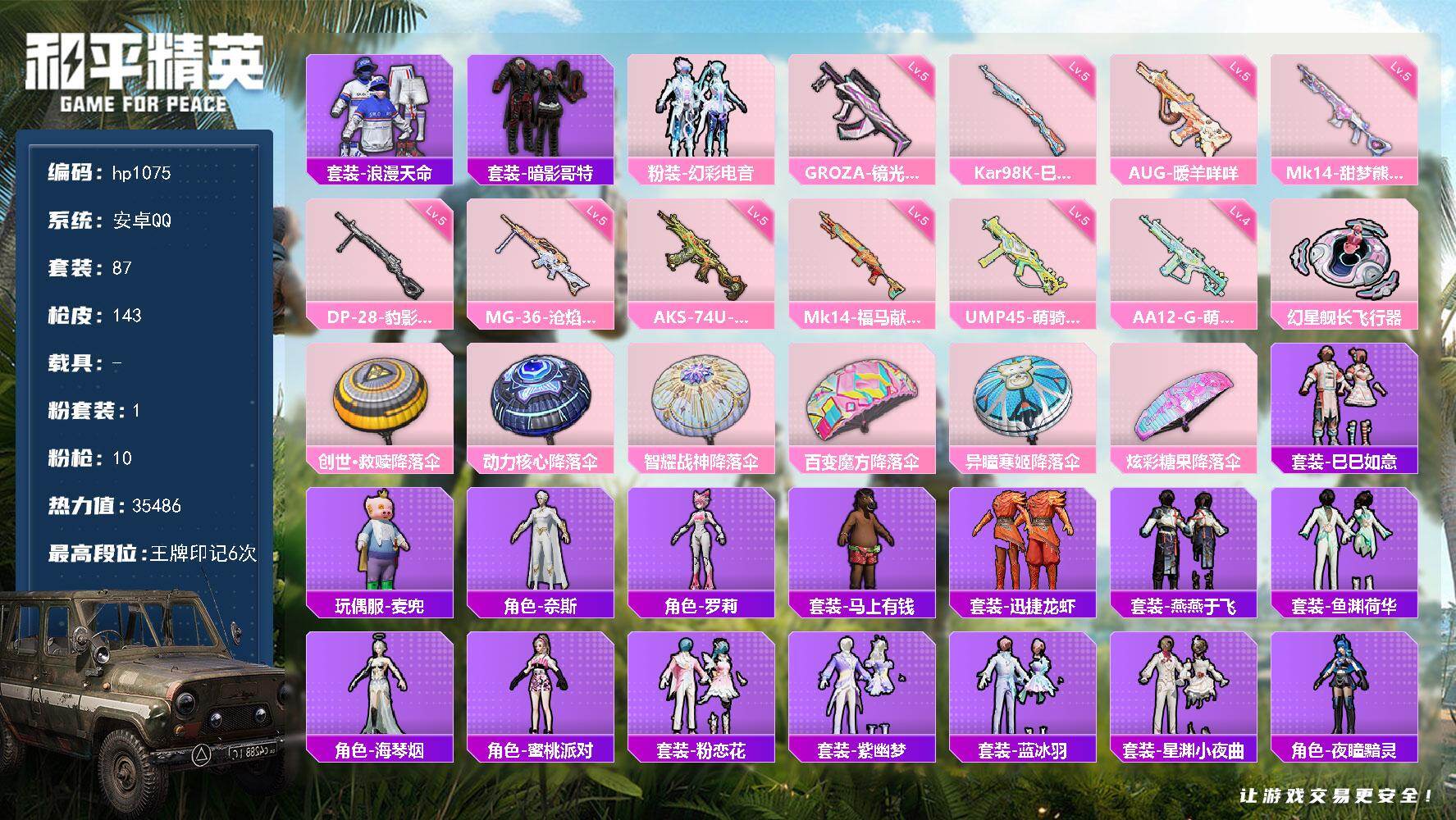 安卓 手Q-1粉装-10特效枪-0载具-1粉色飞行器-354